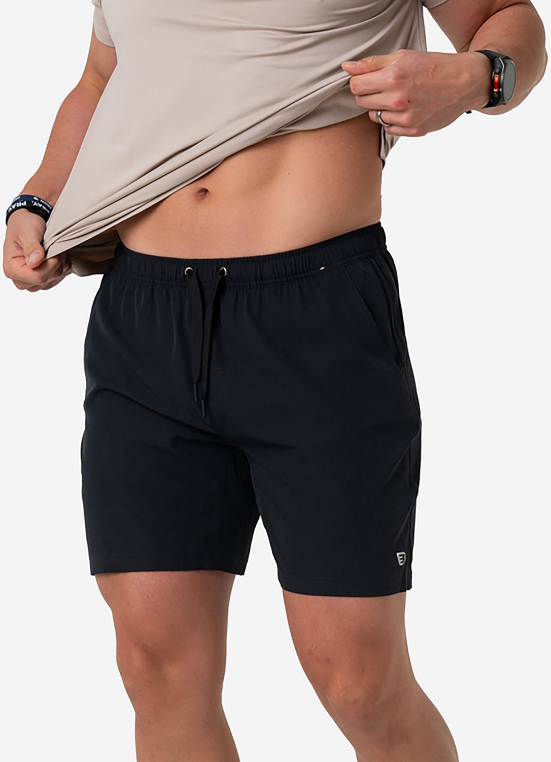 Keep workouts comfortable with BURLEBO Men's Athletic Shorts. The polyester-spandex blend stretches 4 ways for easy mobility while the interior liner provides a compressive fit. Fibers wick away sweat and dry quickly, helping you stay cool and fresh throughout your exercise routine.