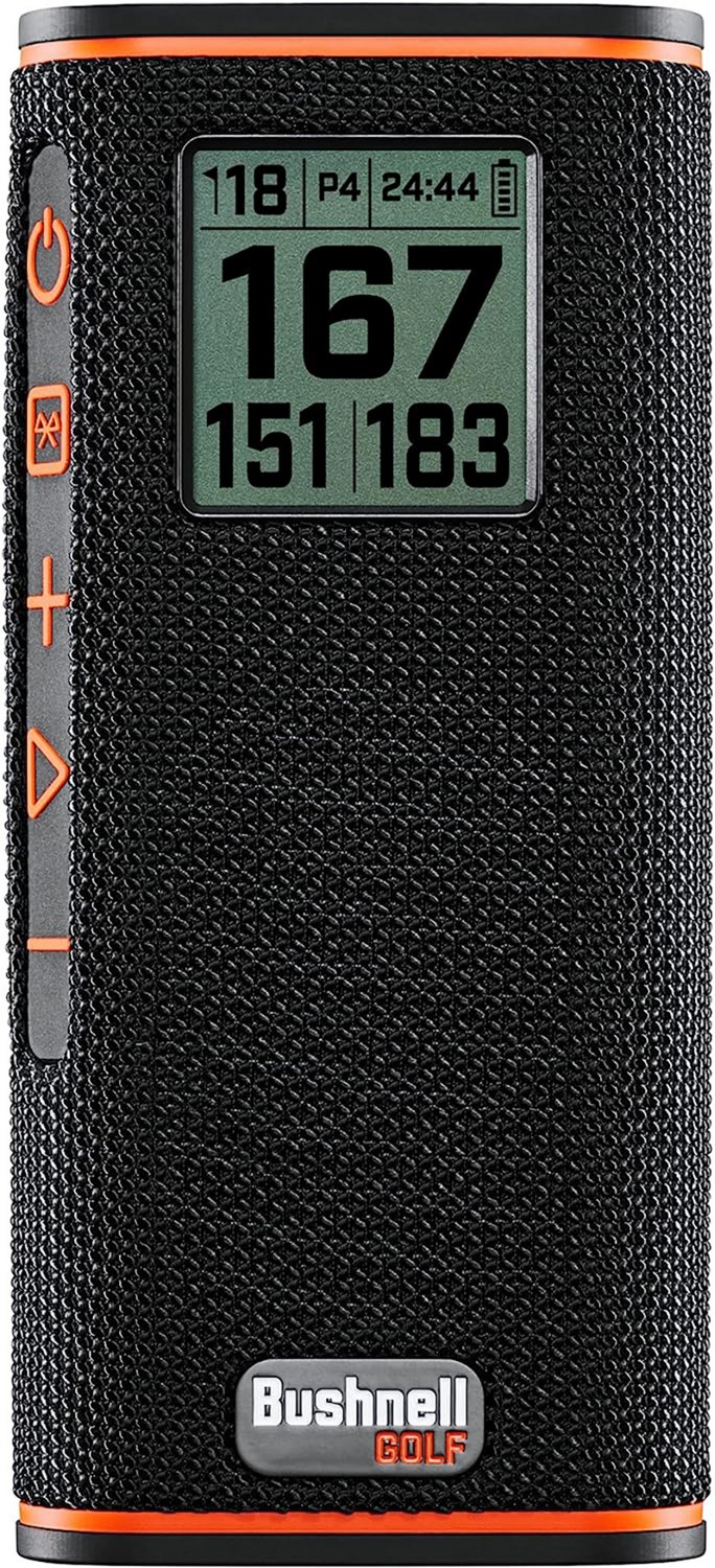Improve your golf game with the Bushnell Wingman 2 GPS Golf Speaker. The speaker has audible front, center and back distances as well as custom messages and 1st tee introductions, while the LCD screen provides distance and music info. The BITE magnetic cart mount offers convenient attachment, and the water resistant and splash proof design helps defend against the elements.
