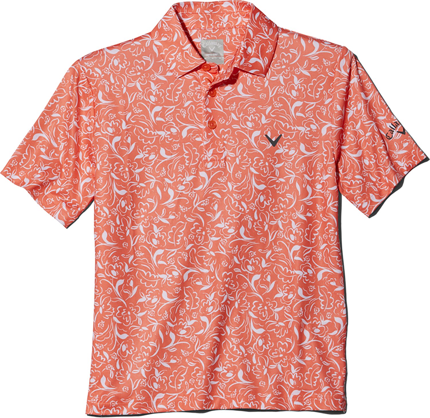 Look your best in the Callaway Boys' Floral Printed Polo Shirt. It is made of 95% polyester and 5% spandex. The stretch provides a full range of motion, and its Opti-driâ„¢ moisture wicking technology keeps you dry so you can stay comfy no matter what the day brings. The collar neckline keeps things laid-back and sharp, so you can rock a polished look without any fuss.