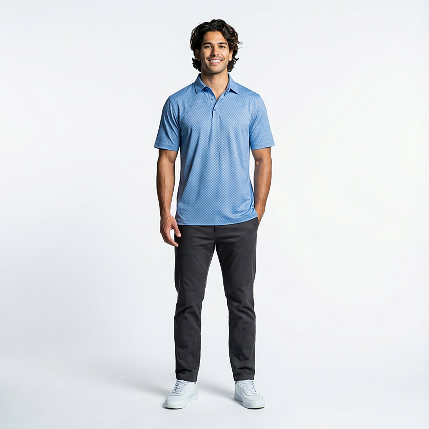 From tee to green, stay cool and comfortable in the Callaway Men's Pro Spin Jacquard Polo Shirt. Its polyester-elastane blend provides a lightweight and stretchy fit, and it's equipped with moisture-wicking technology and UPF 50+ protection for added comfort. A jacquard print adds fairway fashion.