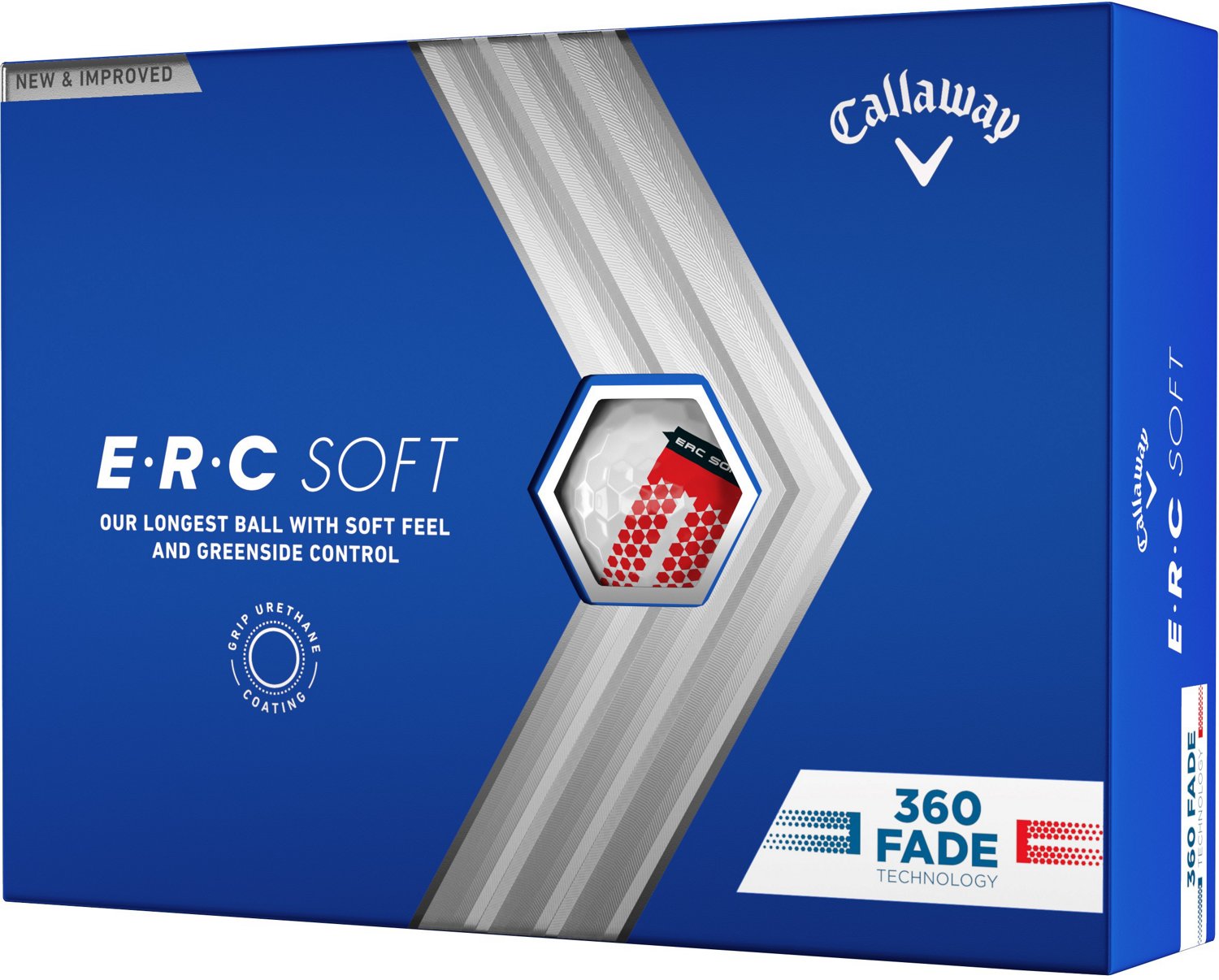 Step up your swing game with the Callaway Women's 2023 ERC Soft 360 Fade Golf Balls 12-Pack. The GRIP Urethane Coating System helps you control the spin on the green with your wedges, and the three-piece performance golf ball is made specifically for women and designed to produce an extremely soft feel with exceptional distance. The 332-dimple design optimizes launch conditions for maximum carry distance, and the HyperElastic SoftFast core optimizes velocity without sacrificing the softness.