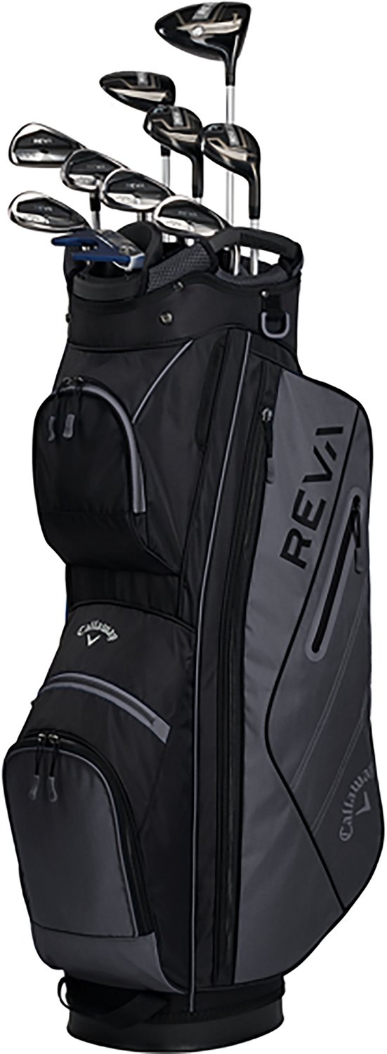 Enjoy a game of golf with theCallaway Women's Reva 11-Piece Cart Package Set. Titanium heads with high MOI and graphite shafts help improve your distance, while the soft rubber grips provide comfort.