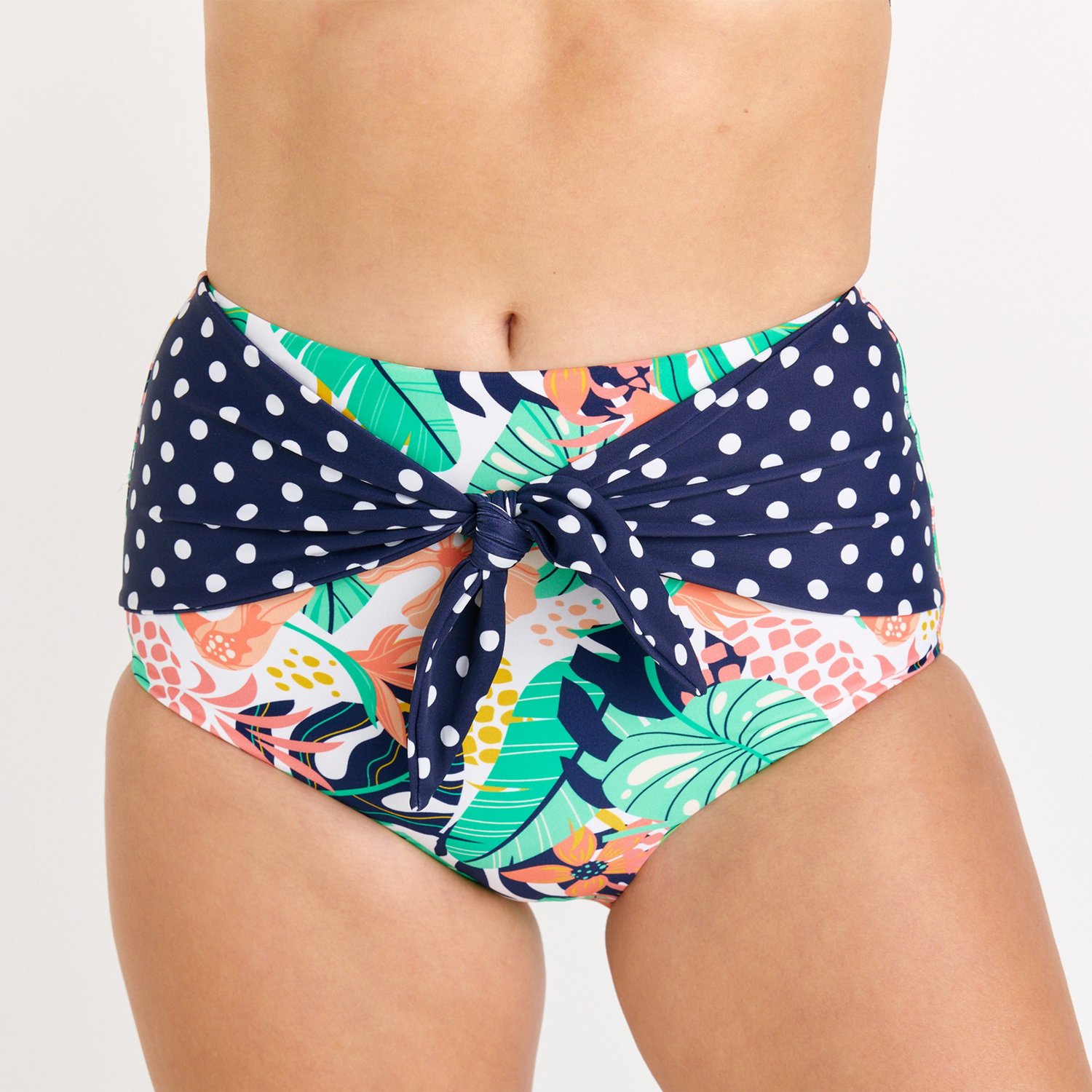 Whether swimming, lounging, or anything between, do it while looking great in the Calypsa Women's High-Waisted Bikini Bottom with Front Tie. The high waistband and full-coverage bottom provide a flattering fit, while the stretch fabric lets you move in all directions. The material dries quickly for comfort and provides UPF 50+ protection against UV rays.