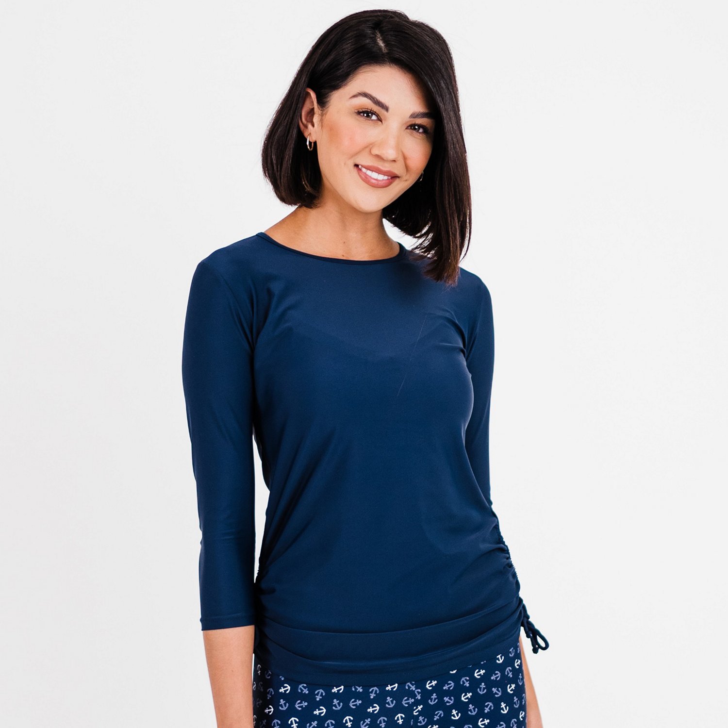Get ready for the pool or beach with the Calypsa Women's Margaux Swim Top. The soft, stretchy fabric provides UPF 50+ sun protection and dries quickly for comfort in or out of the water. Ruched sides create a flattering fit.