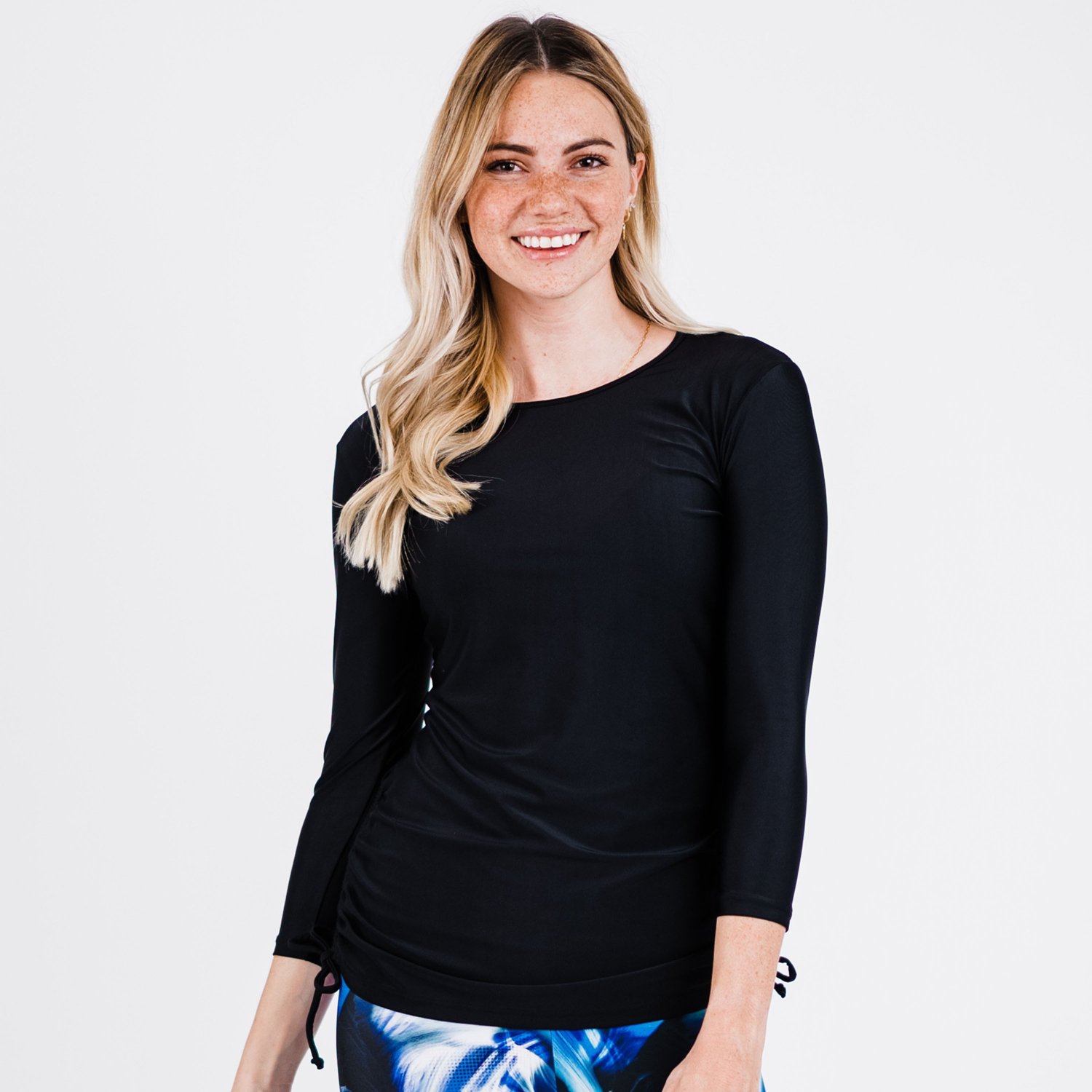 Get ready for the pool or beach with the Calypsa Women's Margaux Swim Top. The soft, stretchy fabric provides UPF 50+ sun protection and dries quickly for comfort in or out of the water. Ruched sides create a flattering fit.
