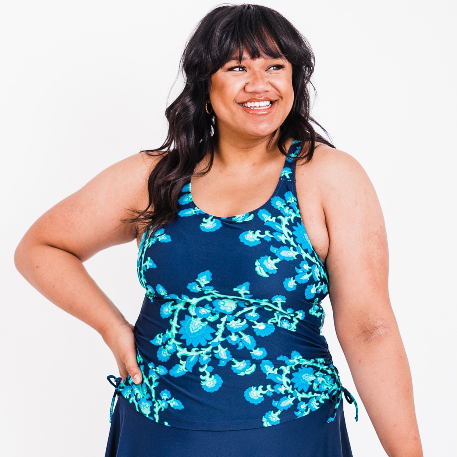 Tankini-style top helps ensure freedom of movement while providing coverage