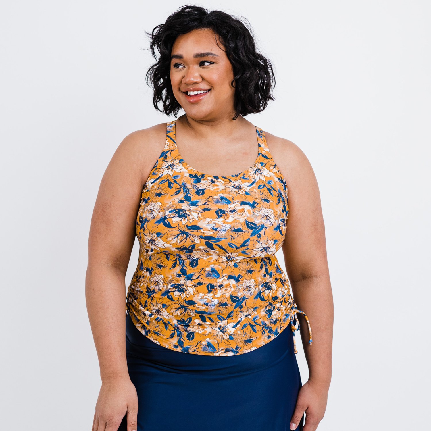 Tankini-style top helps ensure freedom of movement while providing coverage