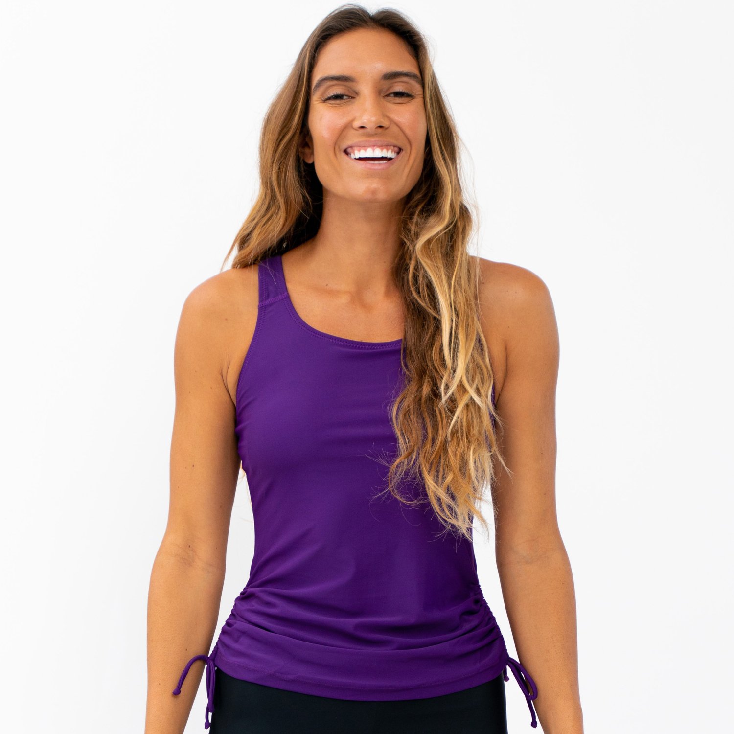 Racerback design offers a chic, modern touch