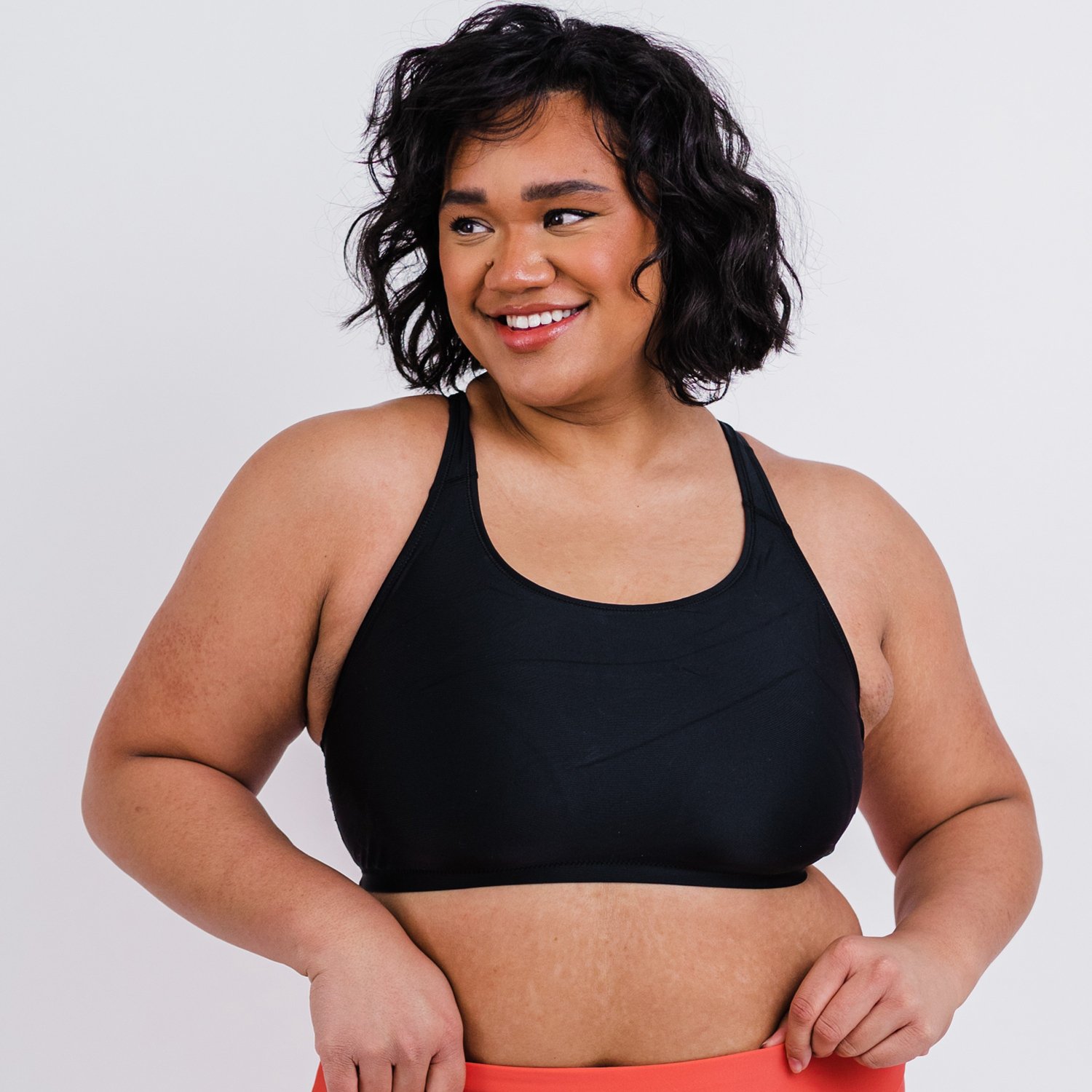 Have more support at the beach with the Calypsa Women's Racerback Sewn-in Plus-Size Swim Bra. This lightweight and comfortable swim bra is made with a blend of nylon and spandex and designed without underwires. The round neckline provides more coverage, and the racerback design and sewn-in cups offer support.