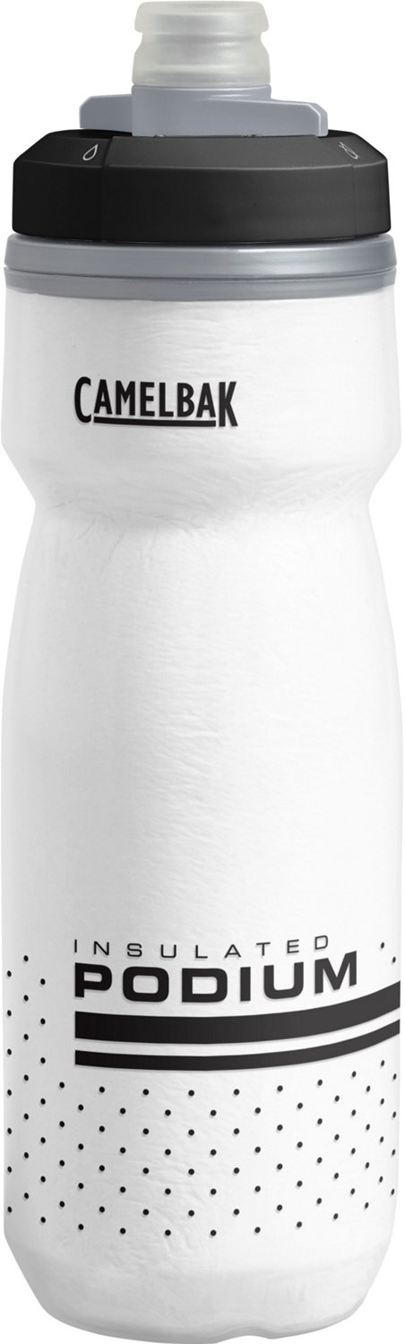 When you're on your bike, bring along the CamelBak Podium Chill 21 oz Insulated Bike Water Bottle. This bottle features double-walled construction for temperature retention and is made with Tru-Taste™ polypropylene and Hydroguard™ to keep your water tasting clean. Designed to fit most bottle cages.