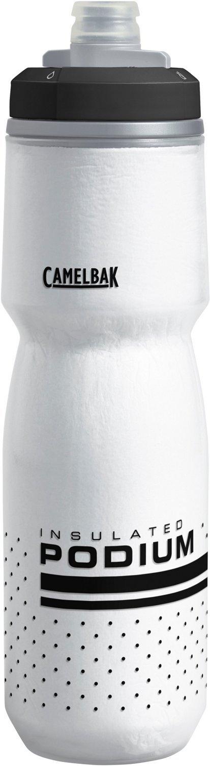 Stay hydrated while on your bike with the CamelBak Podium Chill 24 oz Water Bottle. The BPA-free Tru-Taste™ polypropylene helps ensure a clean water taste, while the double-walled construction keeps its contents cool for your entire bike ride. The JetValve™ self-sealing cap prevents messes while offering a strong flow rate, and the parts of the bottle separate for easy cleaning.