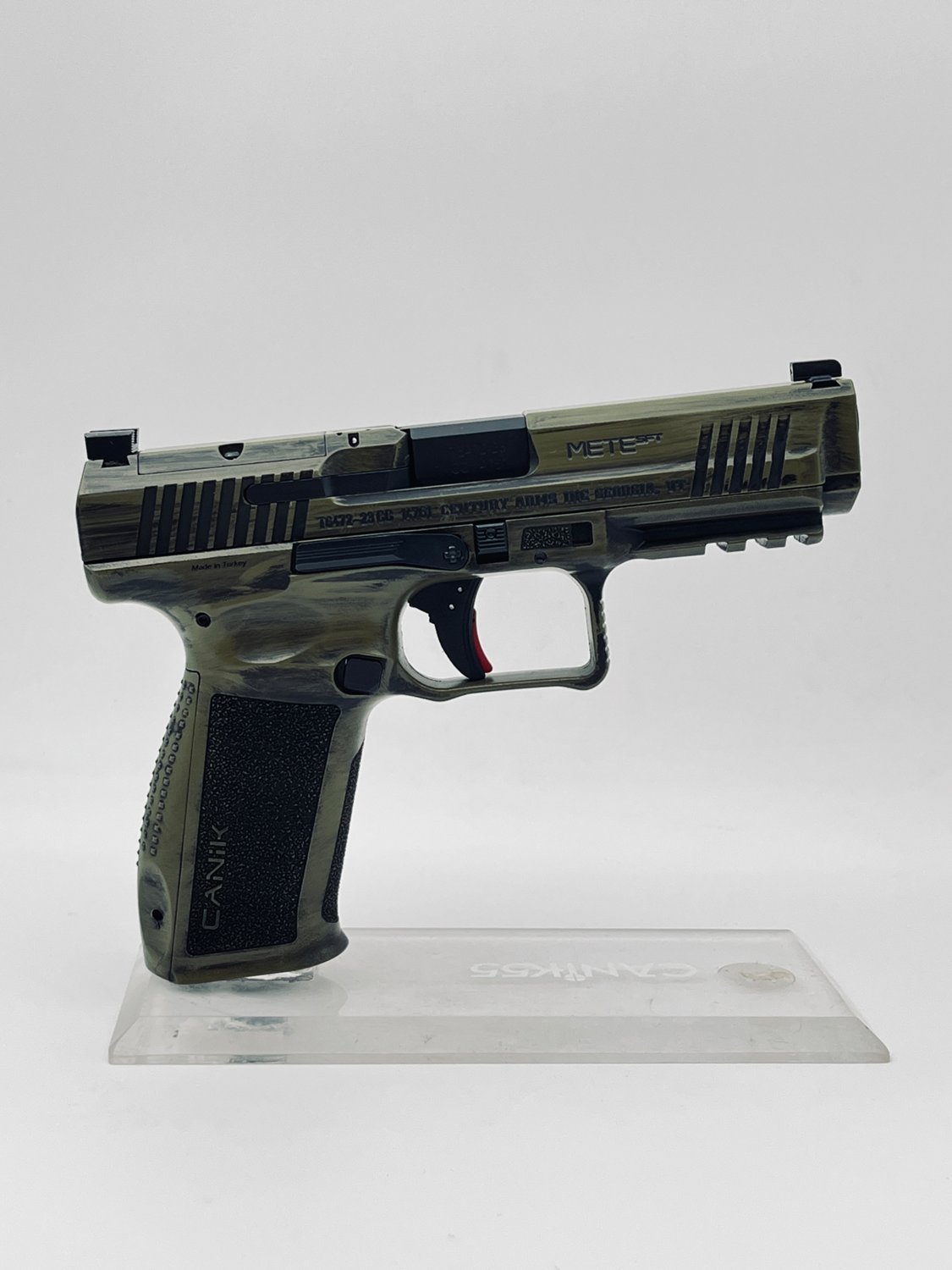 The Canik Mete SFT 9mm Pistol offers precision and style with its distressed finish and single-action design. Featuring an 18-round capacity, this firearm is built for high-performance shooting experiences. Its sleek profile and right-handed configuration provide a comfortable grip and handling for enthusiasts. With a focus on functionality, the Mete SFT is crafted to excel in a variety of shooting activities. Whether on the range or during practice sessions, this pistol delivers consistent performance in a durable and visually striking package.