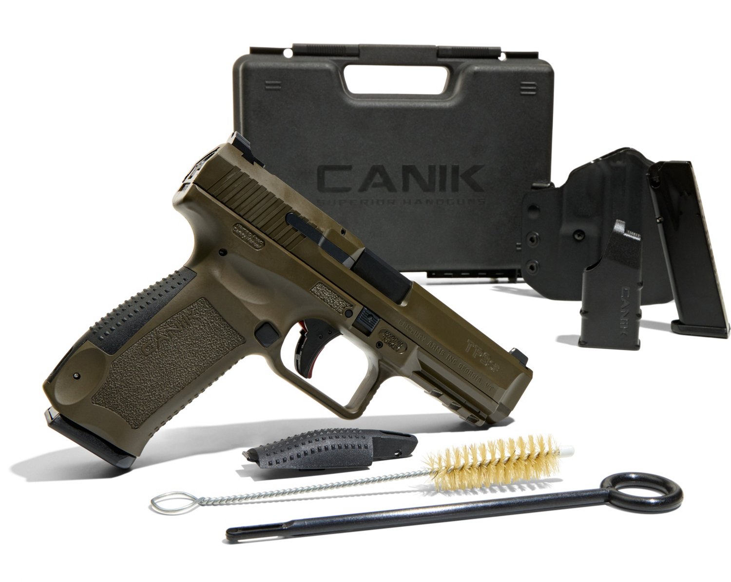 The Canik TP9SF Patriot Brown 9mm Pistol combines performance and style, making it a great choice for recreational shooting. It features a semiautomatic action with an 18-round magazine capacity. The polymer grip provides a comfortable hold, while the phosphorous white dot front sight and Warren tactical black-out rear sight offer clear target acquisition. The pistol is finished with a Cerakote patriot brown coating, adding a sleek appearance. Safety is addressed with a trigger safety mechanism. The package includes a manual, case, and holster. With a 5.7-inch barrel length, the pistol measures 7.55 inches overall and weighs 1.78 pounds. Backed by a lifetime limited warranty on parts and labor, this right-handed pistol is a reliable addition to any collection. A holster and case are included.