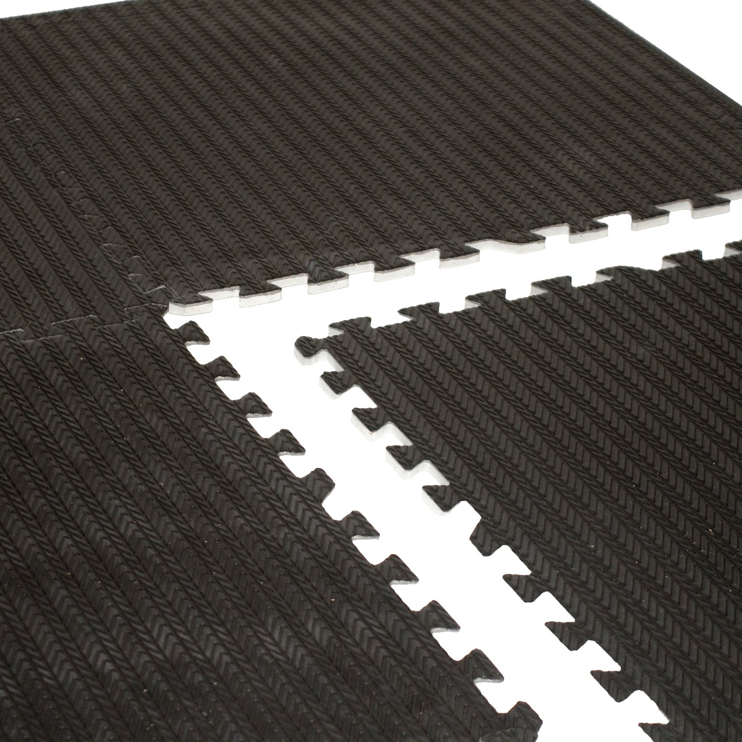 Six 24" x 24" pieces interlock to create a 24 sq. ft. mat
