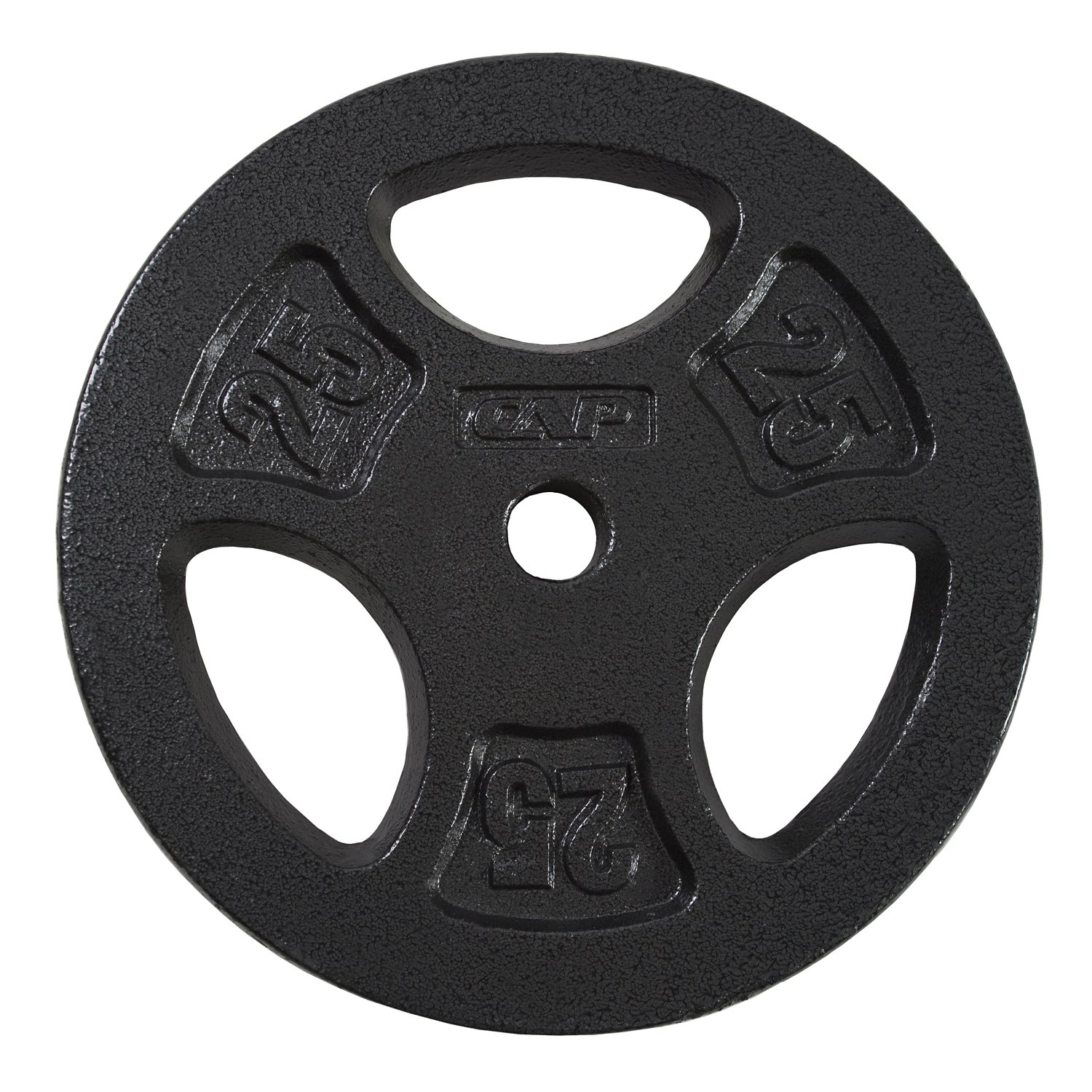 Increase the intensity of your workouts with the CAP Barbell 25 lb. Regular Grip Plate, which features a machined center hole with a baked enamel finish for added durability. This plate has a 3-hole grip design for safe handling and can accommodate 1" bars.