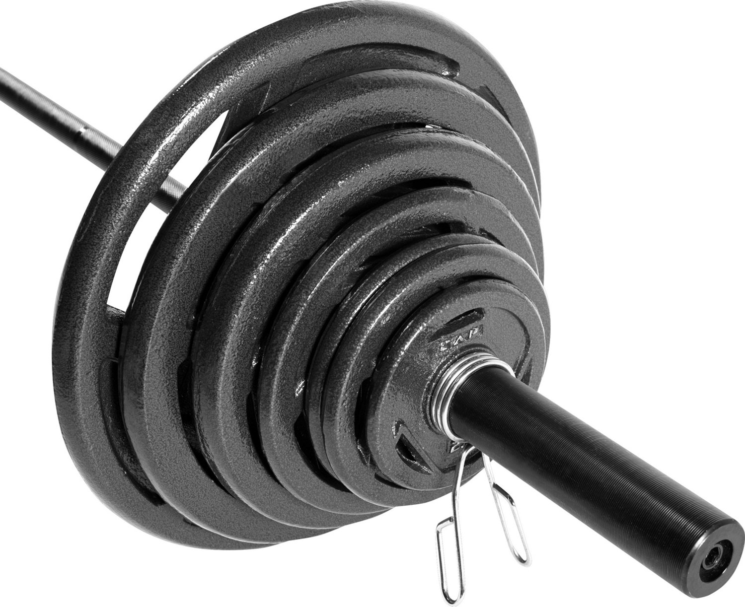 Build your strength with the CAP Barbell 300 lb. Olympic Grip Weight Set, which features plates made of cast iron with an enamel finish to help resist chips and rust. This set is designed to allow safe, secure handling and includes two 2.5 lb. plates, four 5 lb. plates, two 10 lb. plates, two 25 lb. plates, two 35 lb. plates, two 45 lb. plates, one 2" Olympic bar and chrome-plated spring collars.