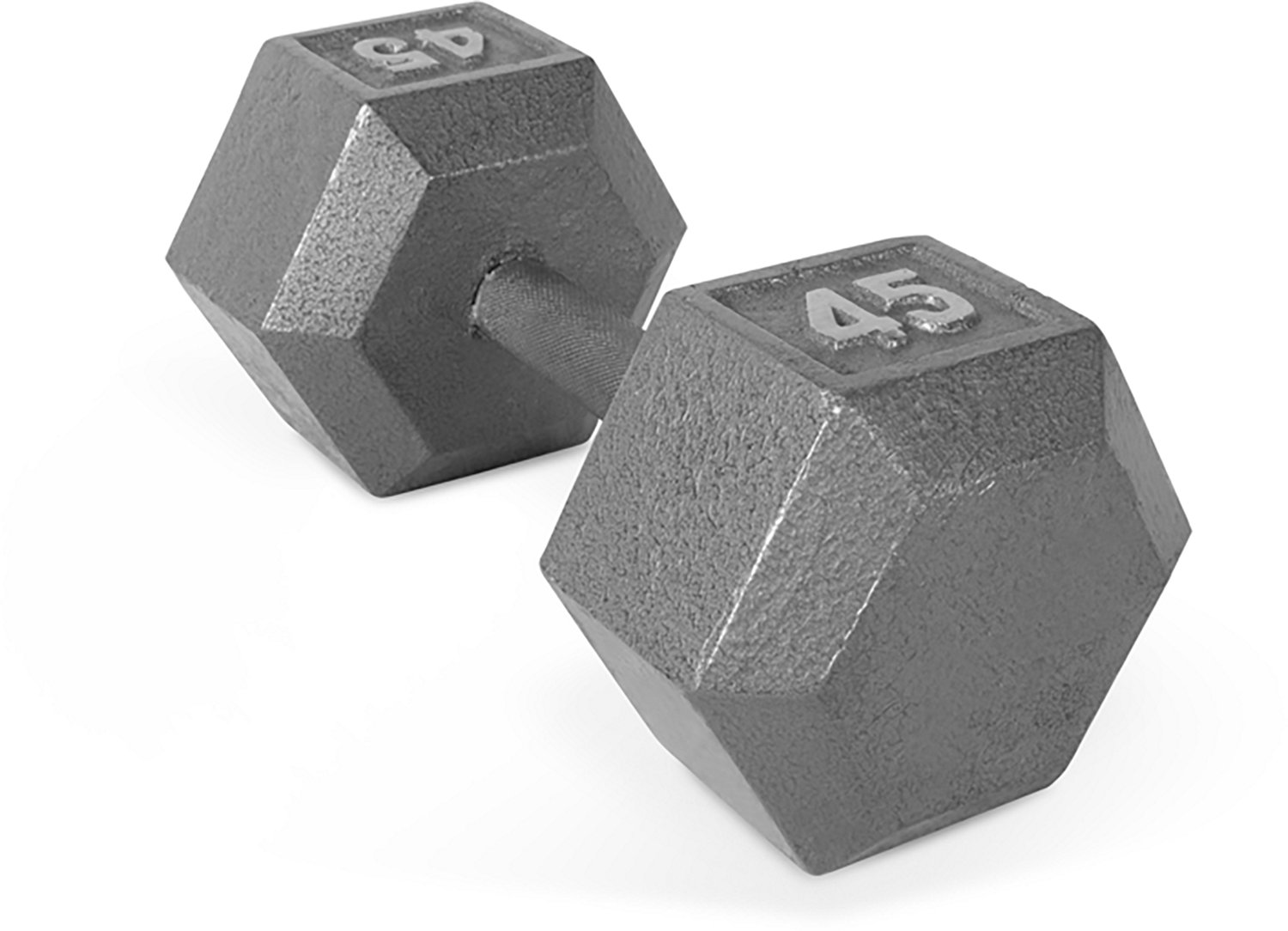 Increase your strength by exercising with the CAP Barbell 45 Lb. Solid Hex Dumbbell – Single. The dumbbell is constructed from solid cast iron for exceptional durability, and their hexagonal design prevents them from rolling when you set them down.