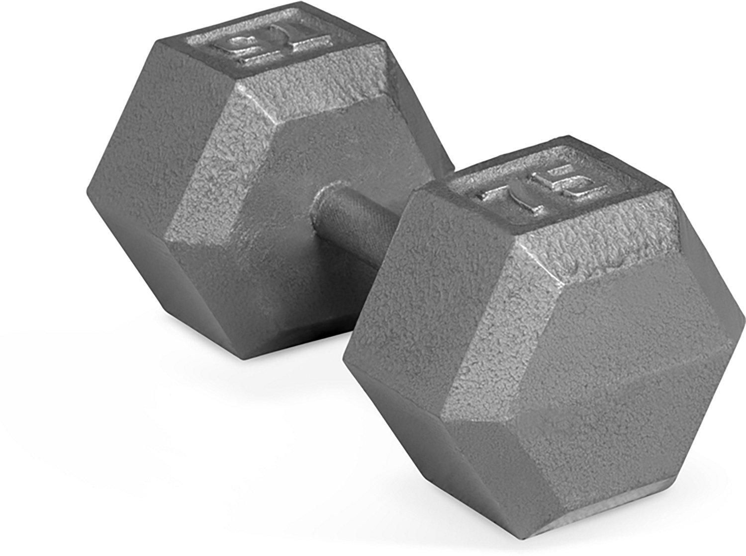 Increase your strength by exercising with the CAP Barbell 75 lb. Solid Hex Dumbbells. The dumbbell is constructed from solid cast iron for exceptional durability, and their hexagonal design prevents them from rolling when you set them down.