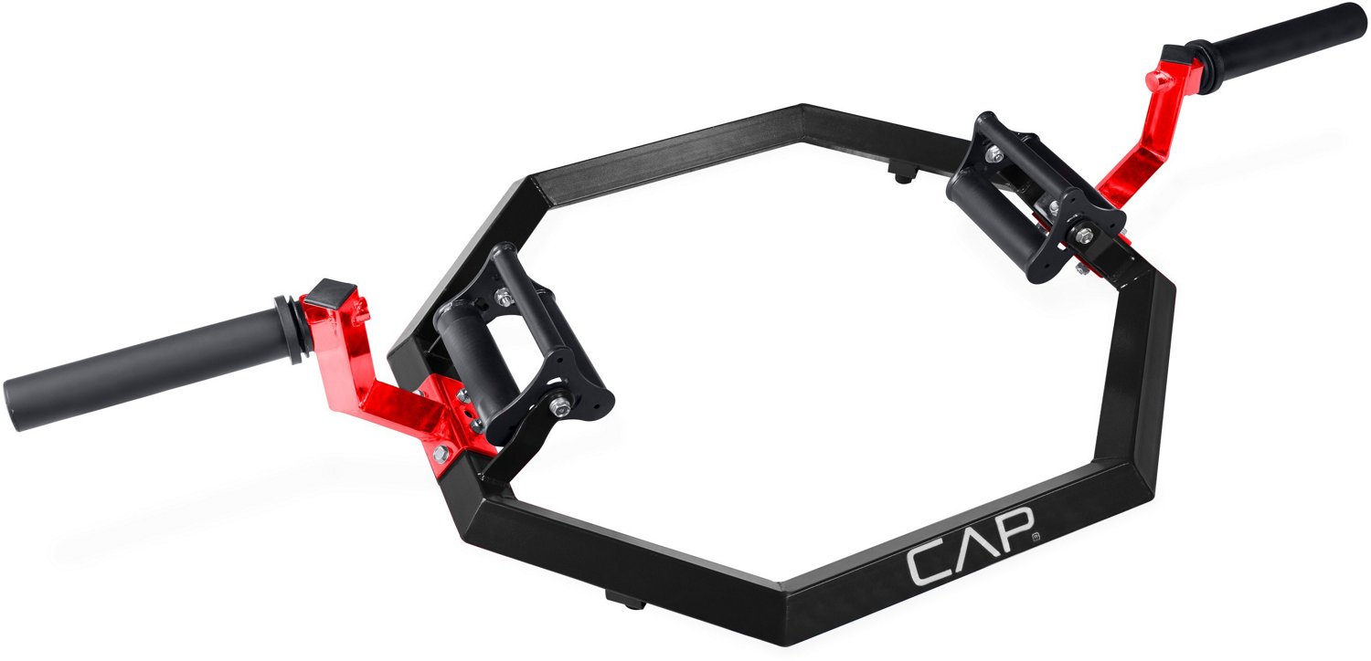 Target your large muscle groups with the CAP Barbell Olympic Super Trap, Shrug and Dead Lift Bar. The shock-resistant bolt-on rubber feet balance the bar and shield your floor from impacts while you lift, and the elevated sleeves allow for easy loading and unloading of plates. The diamond-pattern knurled handles revolve between 3 different grip widths, so you can choose which fits best for you.