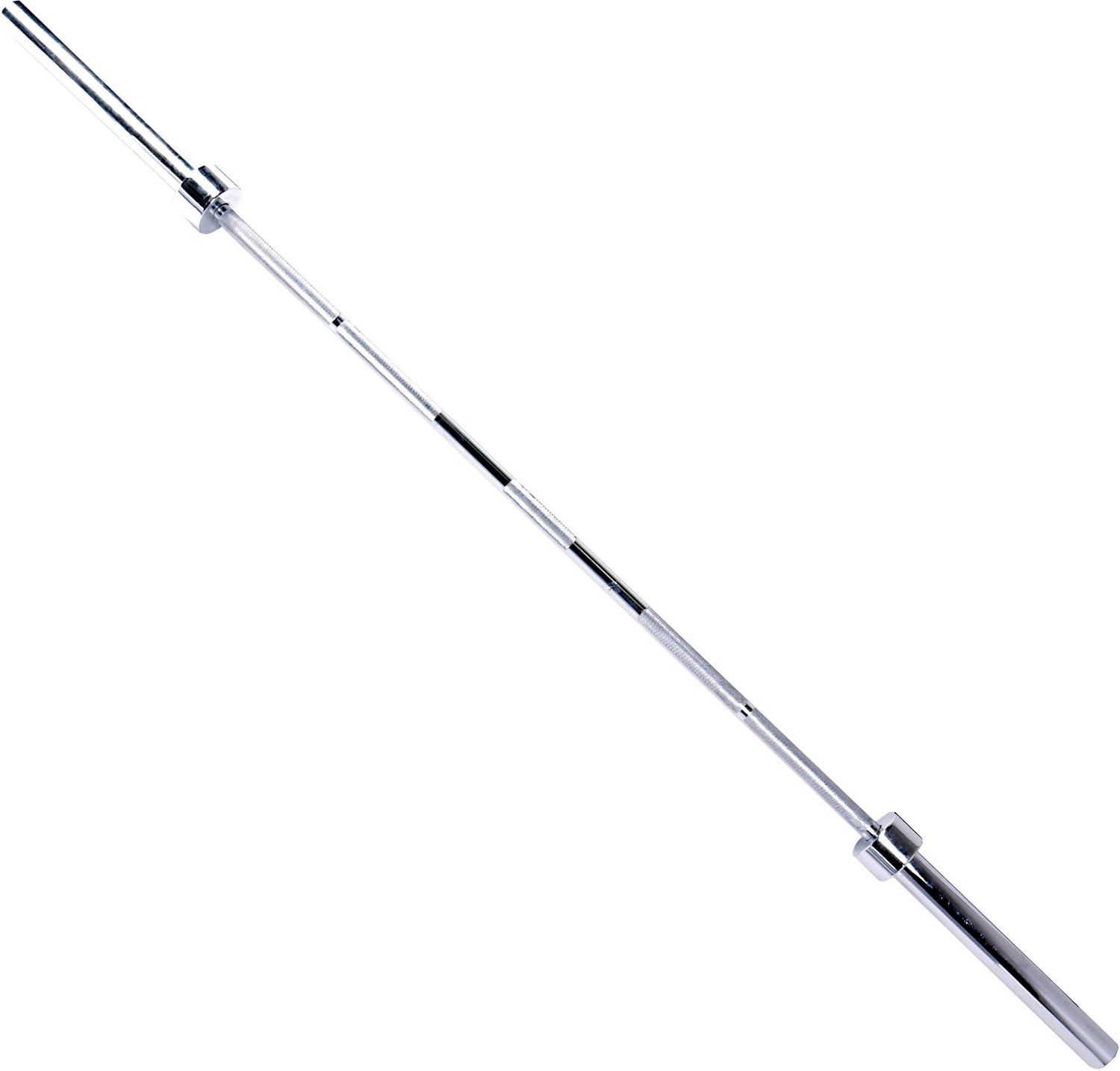 Lift up to 300 pounds with the CAP Barbell Solid 7 ft Bar. Designed with a gleaming chrome finish, this Olympic bar is precisely engineered for balance and long-lasting performance. The bar features a medium-depth, diamond-knurled surface to prohibit warping and touch-sensitive swivel sleeves to reduce pressure on the wrists.