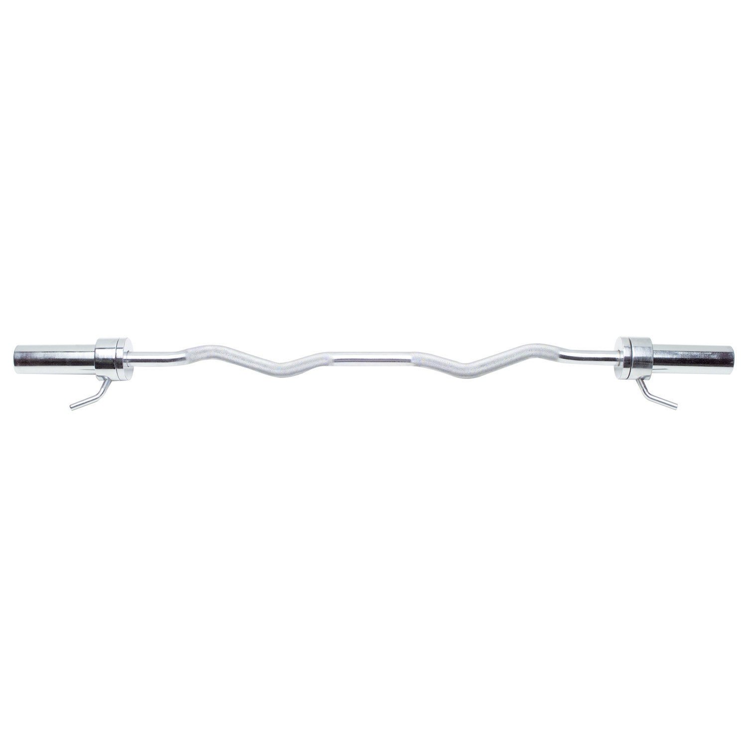 The CAP Barbell Solid Curl Bar is 47" long and can be used for a wide range of weightlifting workouts. This Olympic curl bar develops upper arm mass, strength and definition, and it isolates and intensifies the development of the biceps and forearm muscles while decreasing discomfort to the elbows and wrists. Constructed from solid steel with a chrome finish, this bar features revolving sleeves for weight support and knurled handgrips for a comfortable, secure hold. Ring collars slide easily on and off the bar.