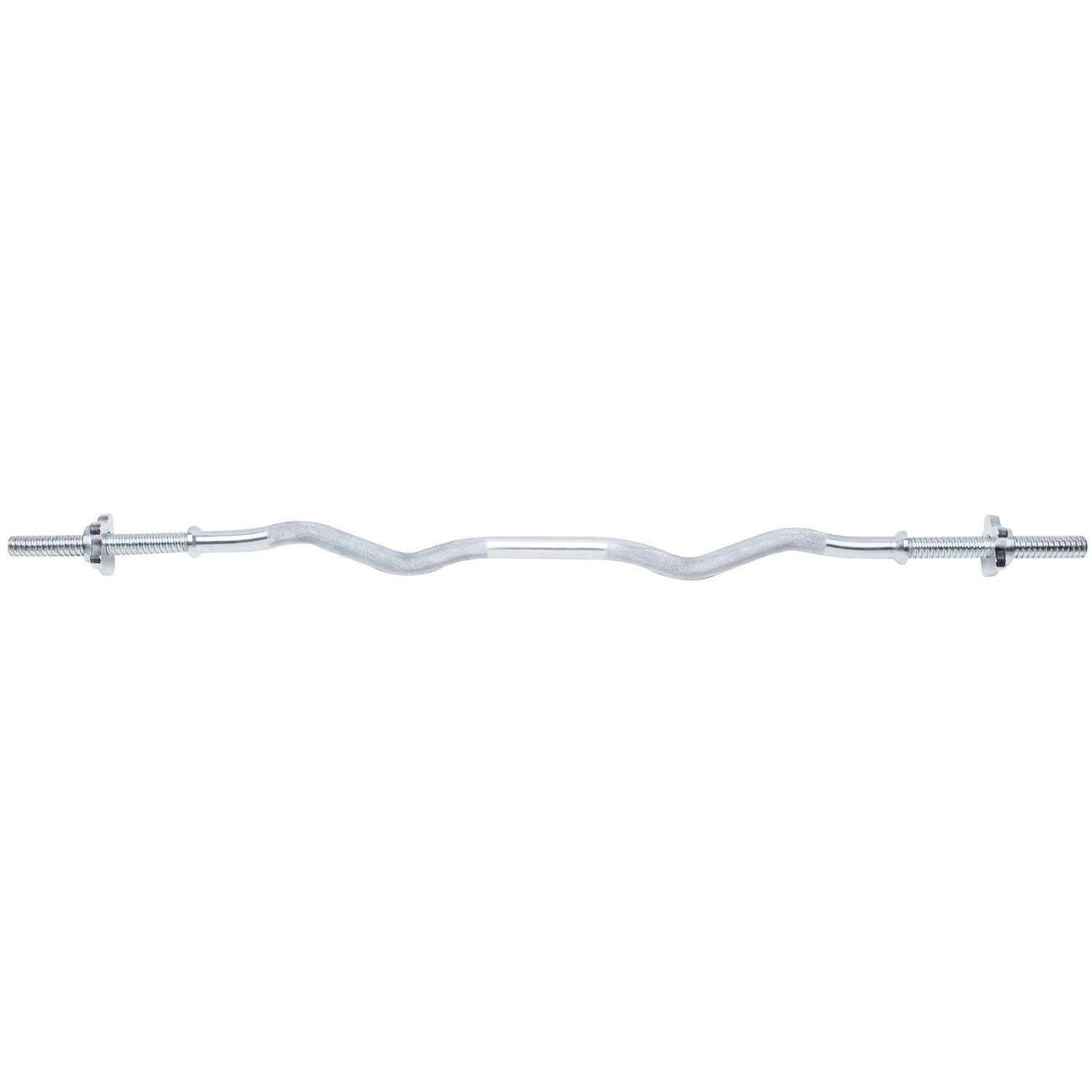 Tone your arms with the CAP Barbell Threaded E-Z Curl Bar. This bar is 47" long and it's constructed from solid steel with a chrome finish. It is designed to develop upper arm mass, strength and definition. This bar isolates and intensifies the development of the bicep and forearm muscles while decreasing discomfort to the elbows and wrists. Threaded ends with 31.25" between the collars.