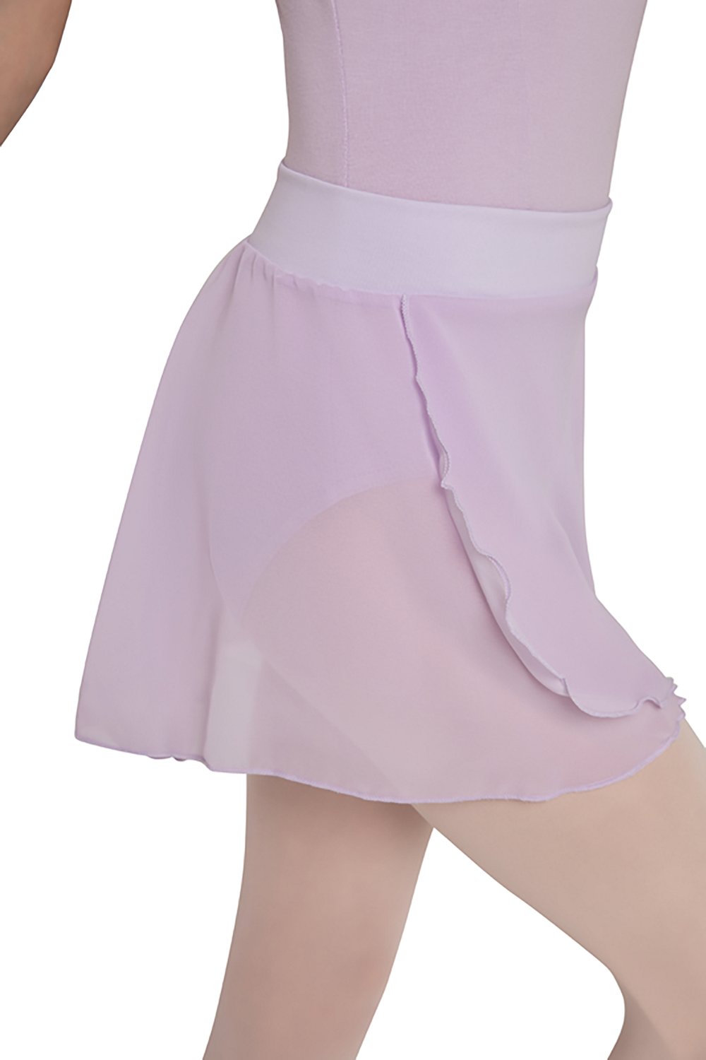 Get through the toughest of routines with the Capezio Girls' Pull On Soft Waistband Skirt. Its body is made of 100% polyester chiffon. The waistband is made of 92% nylon and 8% spandex, and its pull on design allows for an easy on and off. The 1.5-inch waistband stays in place all day.