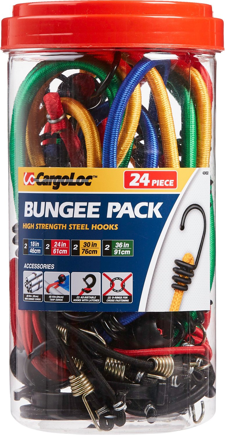 Secure your items with the CargoLoc High Strength Steel Hooks Bungee Pack. The variety of cords helps ensure that you can safely fasten almost any size project, while the high-strength steel hooks offer durability.