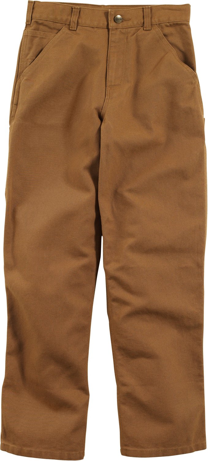 Wear the Carhartt Boys' Canvas Dungaree Pants to school or at home for a classic look. Crafted from 100% cotton canvas material, these pants provide a comfortable feel all day long, while the triple-stitched seams offer durability. The snap button closure and adjustable waist help ensure a secure fit. Multiple tool pockets.