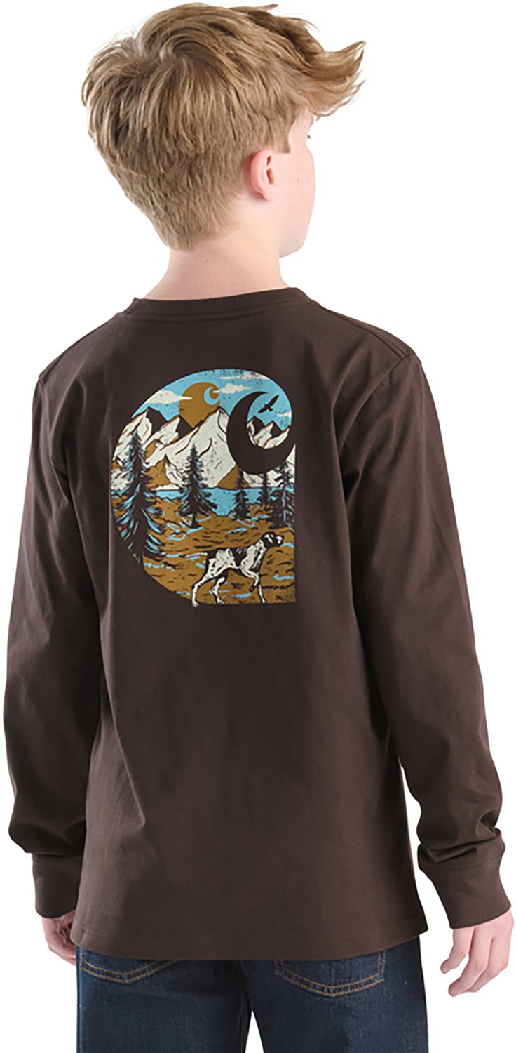 You can add to your wardrobe with the Carhartt Boys' Dog Pocket Long Sleeve T-shirt, which features a relaxed fit and cotton jersey construction for comfort. The T-shirt is designed with a brand-based screen print with a dog scene fill on the back to help you show off your style and has a pocket for storage.