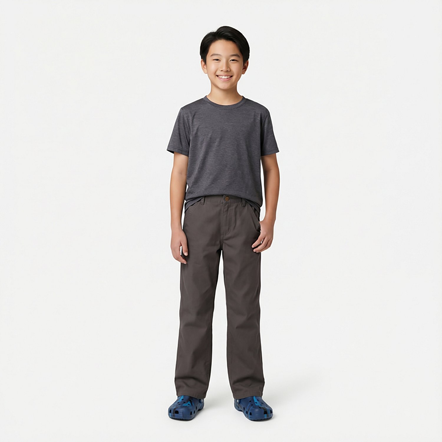 Get young workers ready for the day with Carhartt Kids' Rugged Flex Canvas Work Pants. The cotton blend canvas construction features Rugged Flex® technology for ease of movement. Triple stitched seams enhance durability while multiple pockets keep their tools convenient.