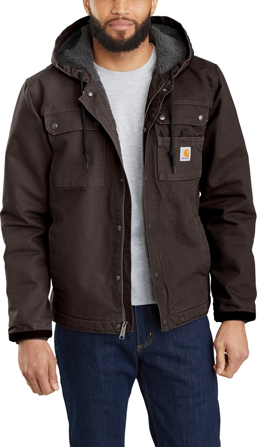 Chilly workdays or weekends won't slow you down whenever you wear the Carhartt Men's Bartlett Jacket. The 100% ringspun cotton duck construction with an ultrasoft sherpa lining blocks out the cool elements and keeps you warm, while the 6-pocket design allows you to keep your hands free of your gear and shielded from the weather.