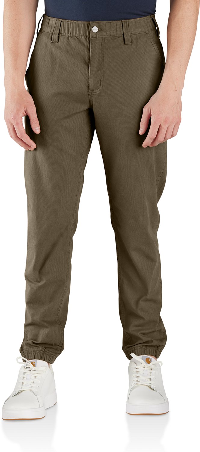Crafted with attention to detail, the Carhartt Men's Canvas Joggers are ideal for everyday wear. They’re made with cotton and spandex canvas fabric for comfort, and they feature Rugged Flex technology for mobility. Tapered legs and elastic cuffs help keep out the cold.
