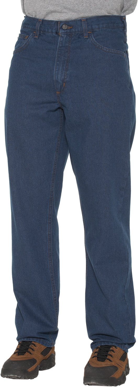 Add safety to your work day in the Carhartt Men's Flame Resistant Relaxed Fit Straight Leg Jean, which is made of garment-washed 100% cotton denim for durability and comfortable wear. This jean features NFPA 2112 flameproof and NFPA 70E electrical safety ratings, and an arc-resistant waist button helps keep you safe. Reinforced back pockets, double-stitched main seams and a brass zipper offer durability, and the leg openings fit over boots. Relaxed fit. Straight legs. 5 pockets.