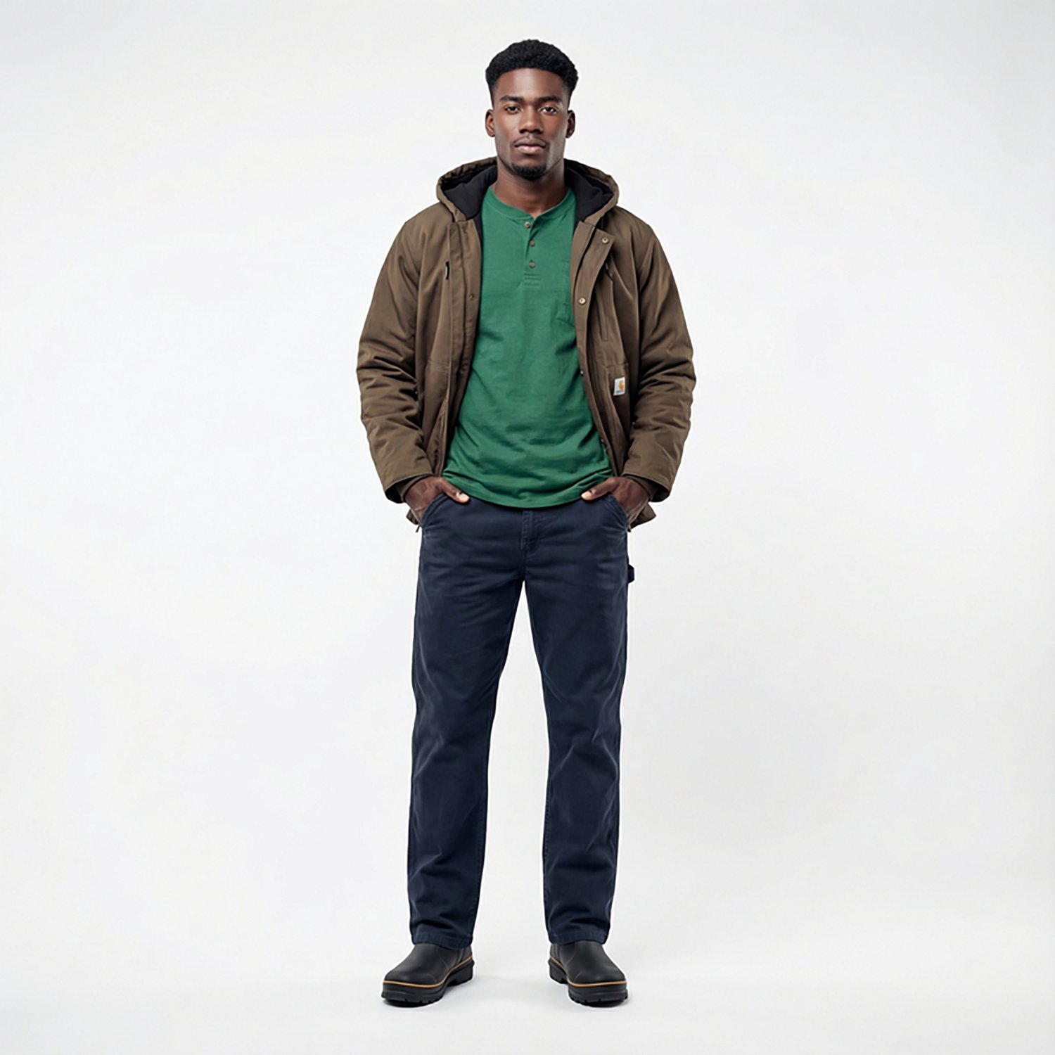 Relaxed fit provides a comfortable fit through the seat and thigh with more room to move and a straight leg opening