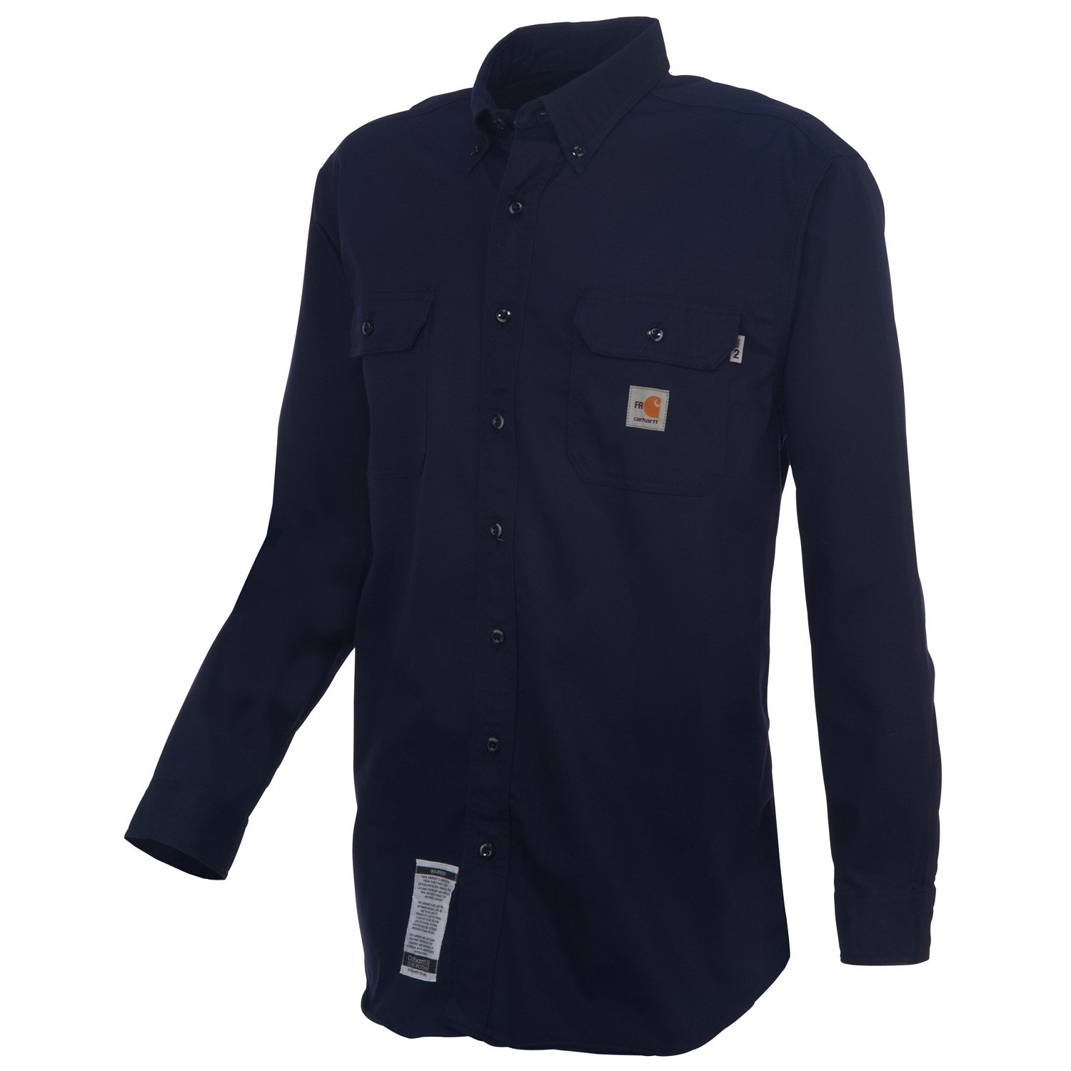 Stay safe even in extreme conditions in the Carhartt Men's Flame Resistant Twill Shirt, which is made of flame-resistant twill for protection. Triple-stitched main seams stand up to rugged wear, and 2 chest pockets with flaps and button closures offer storage for tools and other small accessories.