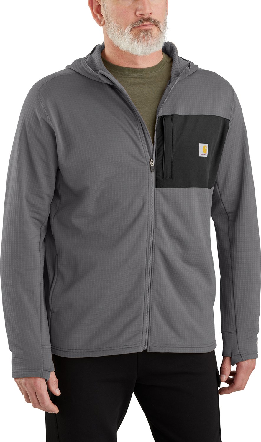 Focus on the job with the Carhartt Men's Force Relaxed Fit Full-Zip Hoodie. The polyester and elastane grid fleece fabric provides a warm and comfortable feel, while the Grid-Back fleece promotes breathability. Carhartt Force and FastDry technology fights odors and wick away sweat to keep you cool, dry and fresh.