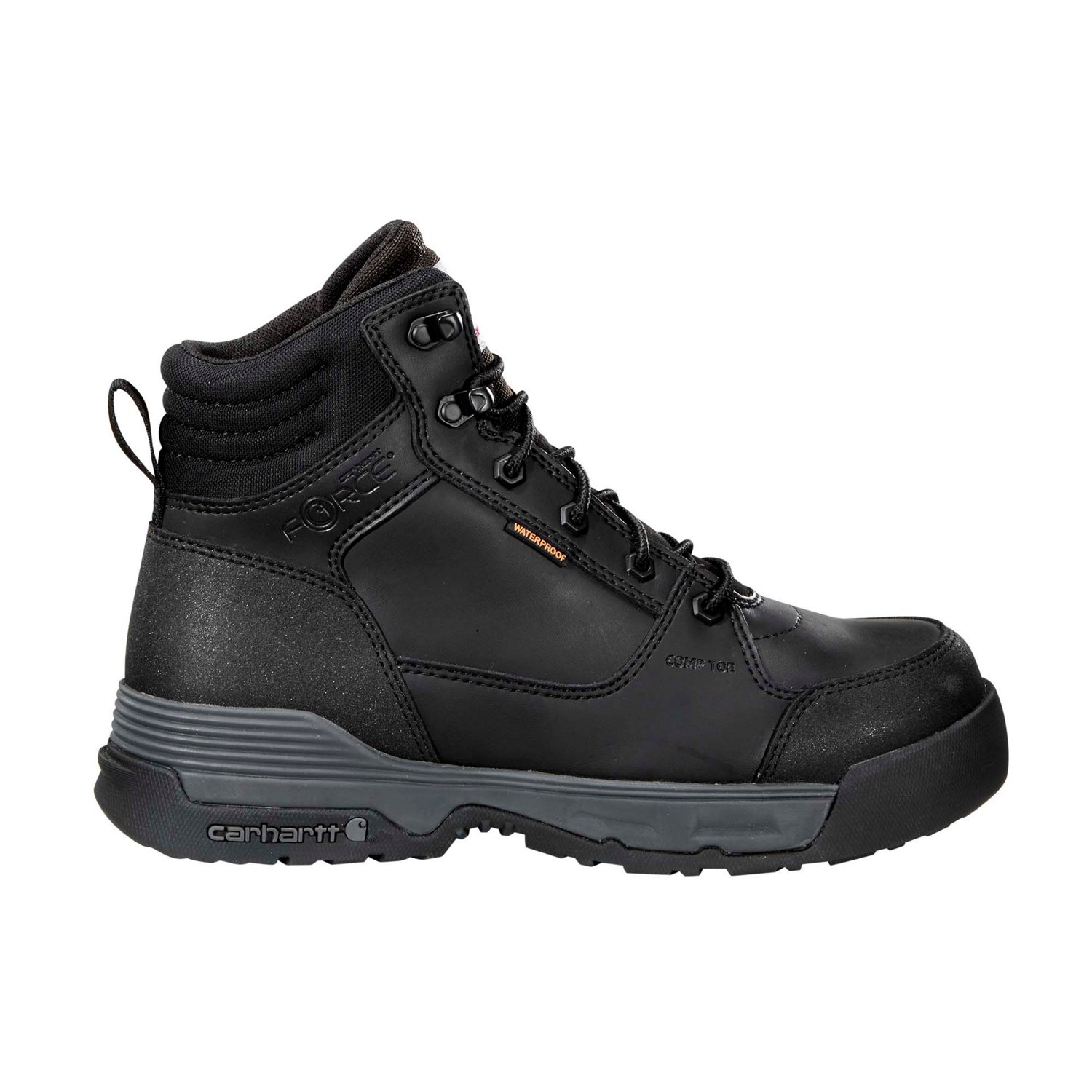Look your best when you wear the Carhartt Men's Force HD Waterproof Composite Toe Work Boots. Their leather construction enhances durability. The FastDry™ linings keep your feet dry, and their PU coated leather heel and toe resists abrasion. The Storm Defender™ offers waterproof, breathable protection.