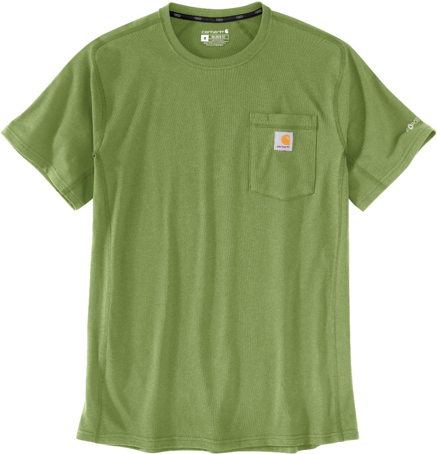 Work in comfort in the Carhartt Men's Force Relaxed Fit Midweight Pocket T-shirt. The moisture-wicking fabric helps repel sweat and keep you cool, while the side panels offer increased ventilation and comfort.