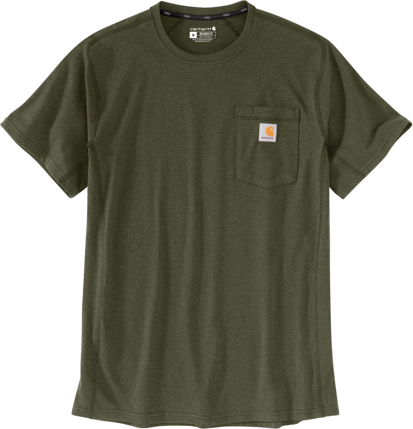 Take on the work day with confidence whenever you wear the Carhartt Men's Force Relaxed Short Sleeve T-shirt. The cotton and polyester stretch plaited jersey knit fabric delivers a soft, lightweight fit and feel. The Force® technology and FastDry® technology help you stay dry, cool and comfortable, while the ventilated side panels supply a cooling air flow for maximum comfort.