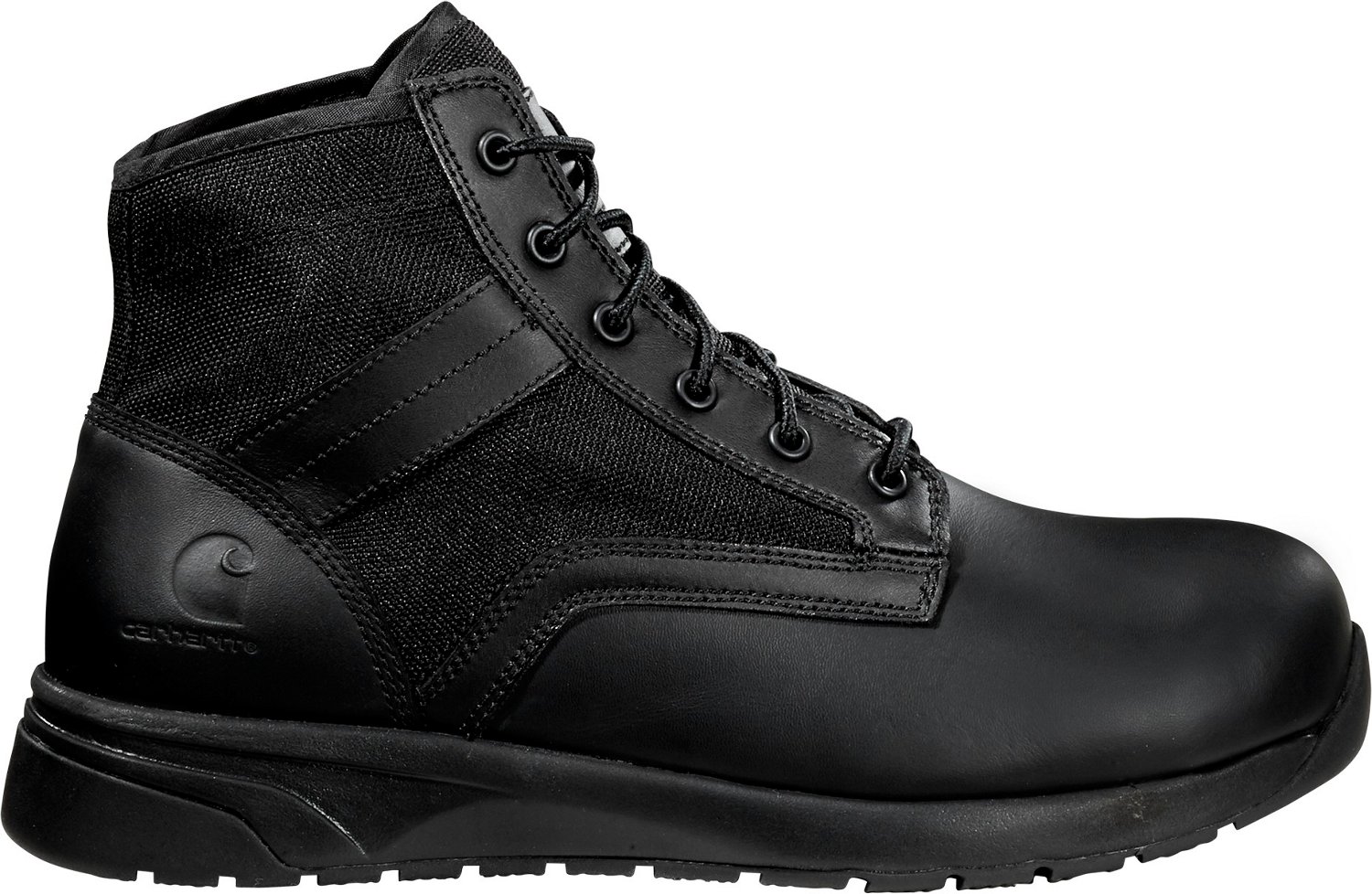 Look good on the job in the Carhartt Men's Force Soft Toe LW 5 in Sneaker Work Boots. The LWD EVA Insite midsoles cradle your feet in cushioning, and the full-grain leather and abrasion-resistant fabric uppers withstand wear and tear. The boots are EH rated to help you stay safe around electrical spaces, and the rubber outsoles help you stay stable on uneven terrains.