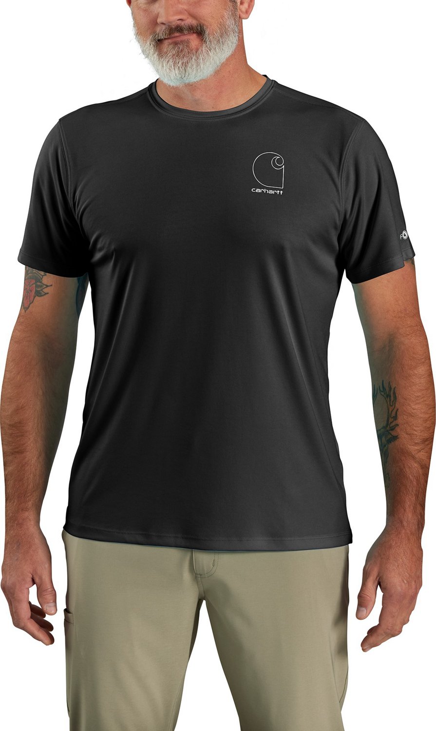 Prepare for the heat of summer with a Carhartt Men's Force Sun Defender Lightweight Logo Graphic Short Sleeve T-shirt. The lightweight polyester jersey provides a breezy feel, while Force® and FastDry® technologies help keep you sweat- and odor-free. Sun Defender™ UPF protection blocks UV rays. The logo graphic displays your brand loyalty.