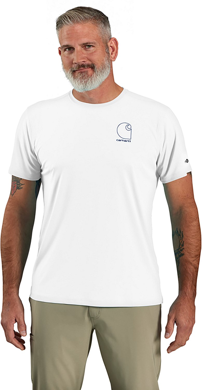 Prepare for the heat of summer with a Carhartt Men's Force Sun Defender Lightweight Logo Graphic Short Sleeve T-shirt. The lightweight polyester jersey provides a breezy feel, while Force® and FastDry® technologies help keep you sweat- and odor-free. Sun Defender™ UPF protection blocks UV rays. The logo graphic displays your brand loyalty.