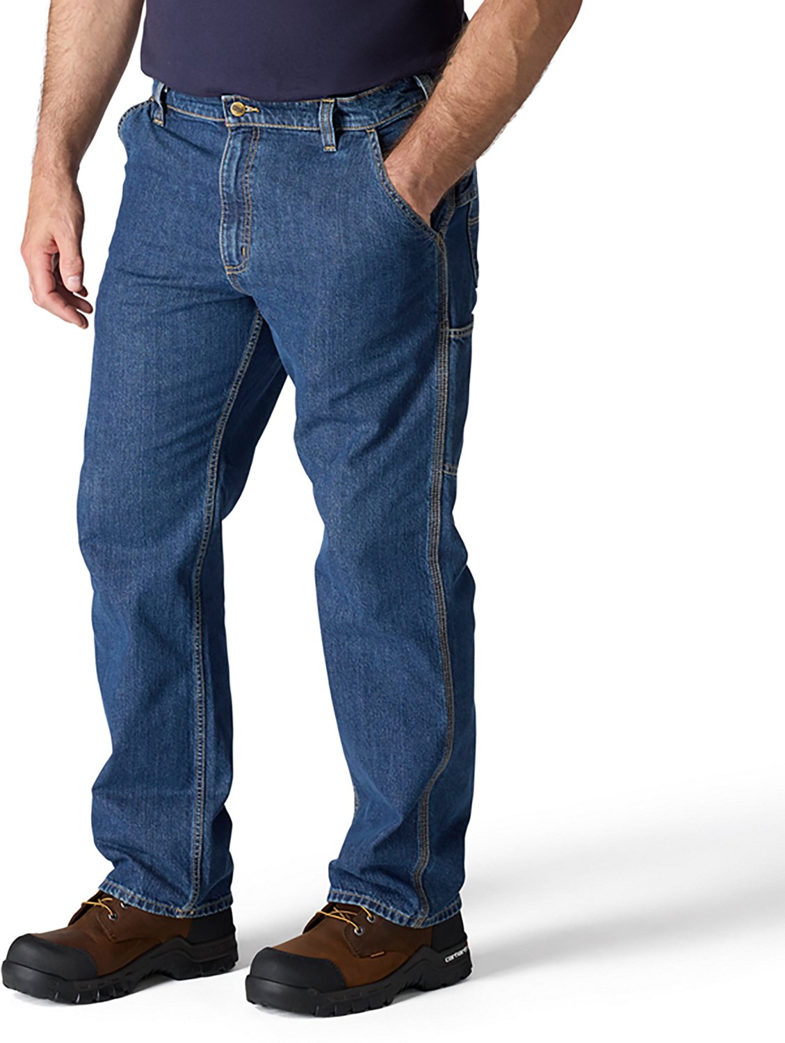 Look your best when you wear the Carhartt Men's FR Loose Straight Denim Dungarees. They are made of 100% cotton flame-resistant denim. The triple-stitched main seams enhance durability, and their multiple utility pockets allow you to carry around everything you need. The generous fit in the seat and thigh creates a comfortable wear.