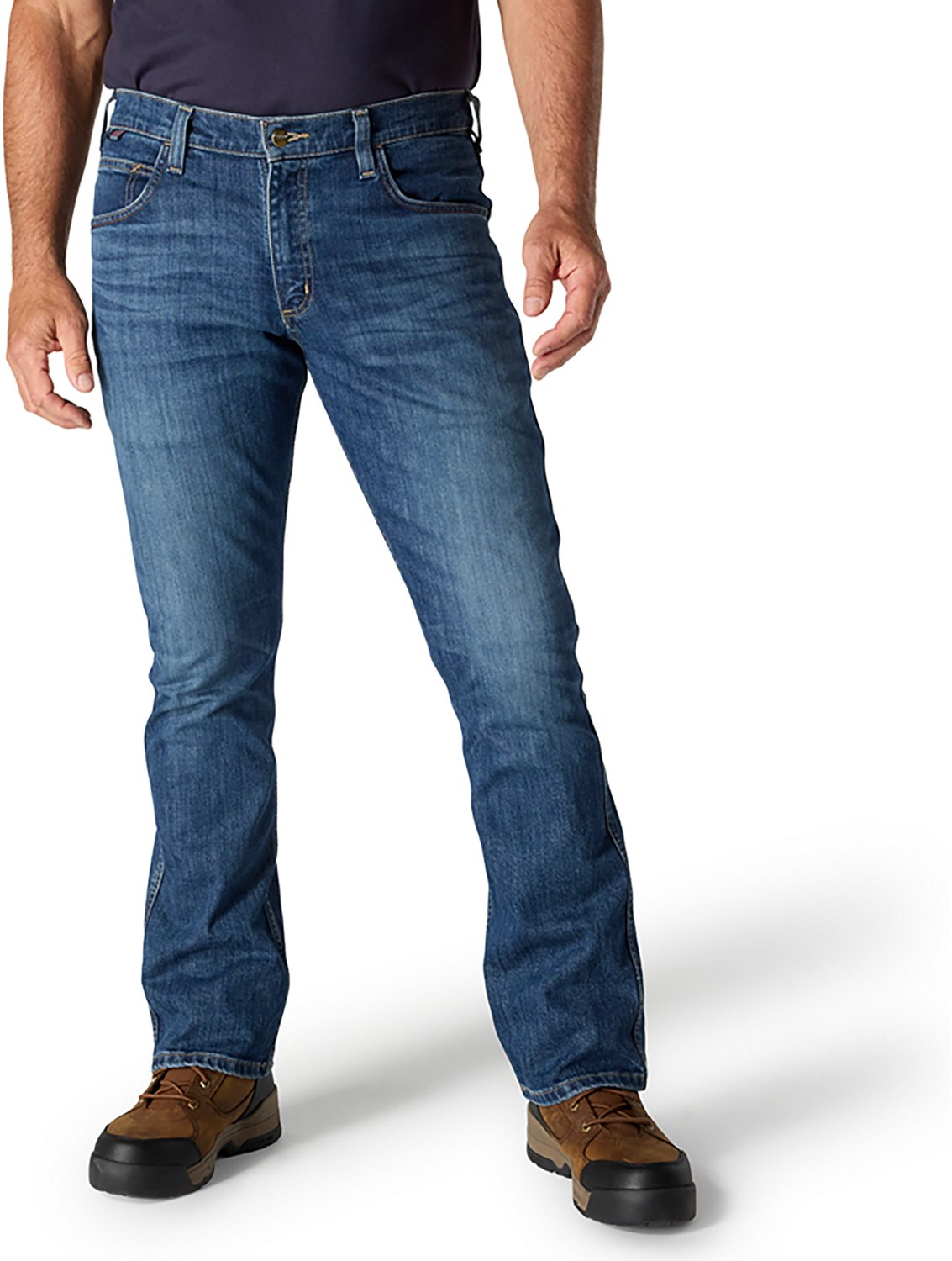 Look your best when you wear the Carhartt Men's FR Relaxed Bootcut Rugged Flex® Jeans. They are made of 99% cotton and 1% spandex. The Rugged Flex® technology stretches and flexes with you as you move, and their 2 reinforced back pockets securely store your items. The comfortable fit in the seat, thigh, and cuffs fit over most work boots.