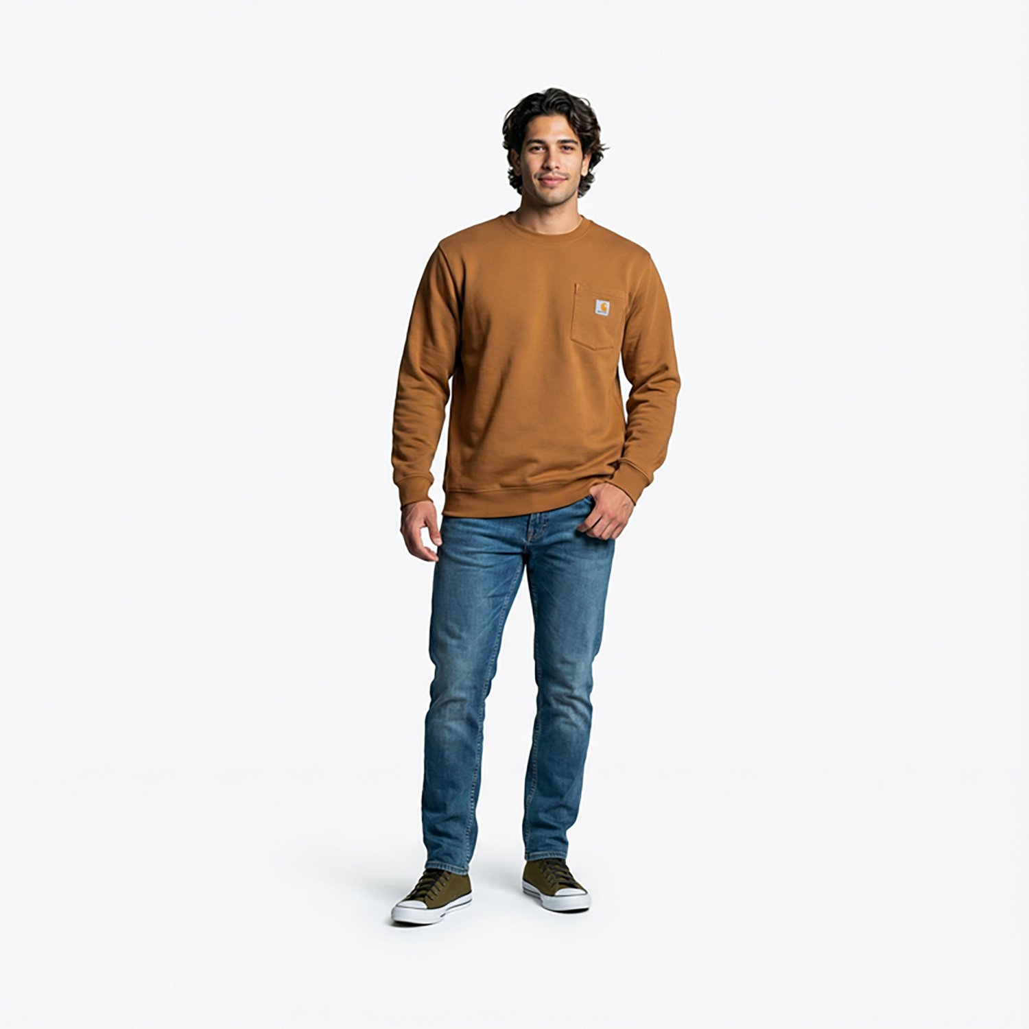 Timeless style meets essential comfort with the Carhartt Men's French Terry Crewneck Pocket Sweatshirt. The convenient chest pocket keeps important items close at hand, and the garment-dyed cotton has a worn-in, vintage look.