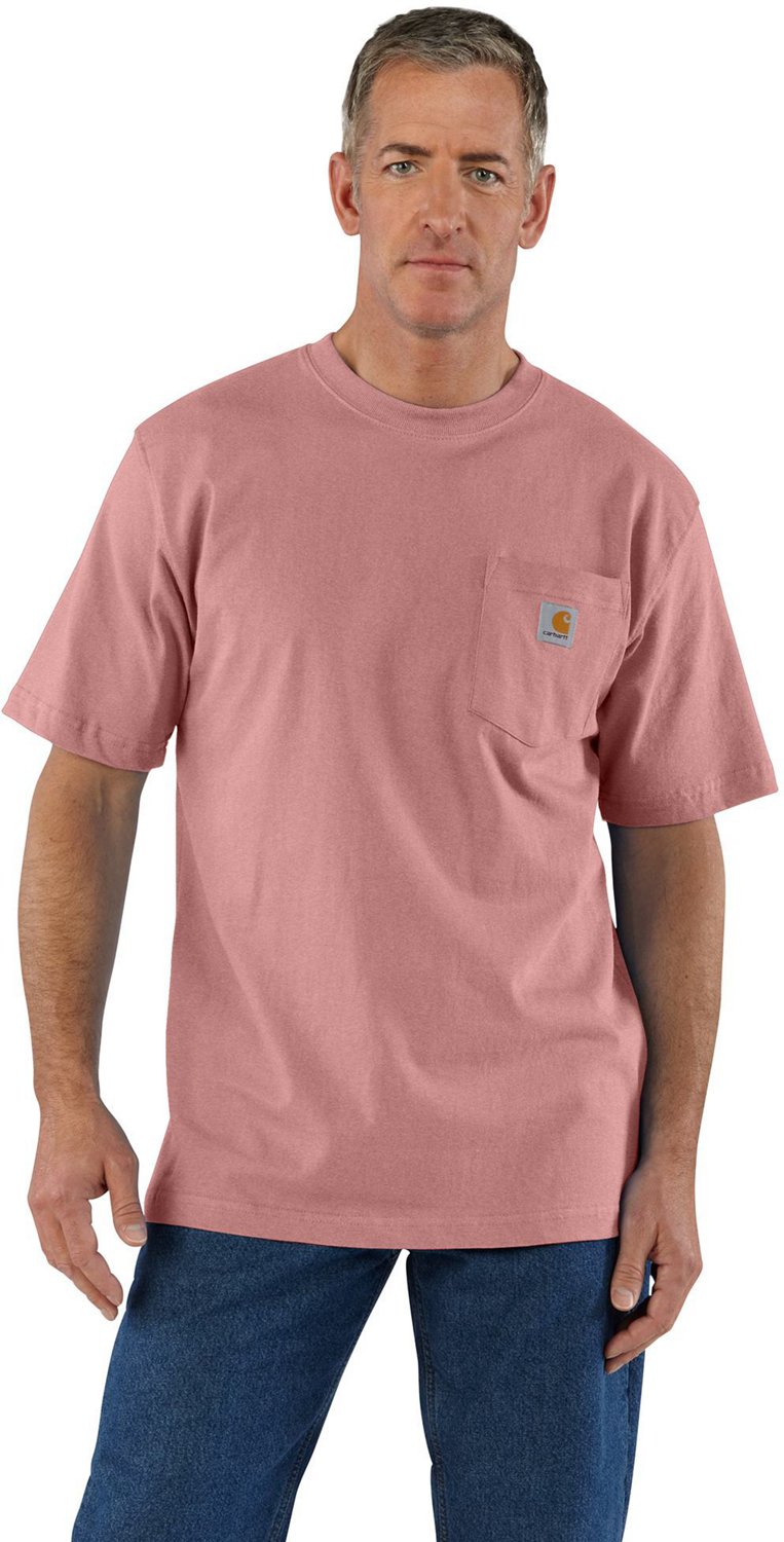 The Carhartt Men's K87 Short Sleeve Workwear Pocket T-shirt is made of a 60% cotton/40% Polyester jersey knit for a soft feel and comfortable wear and features a left chest pocket with the Carhartt logo and a rib-knit collar. Side-seam construction minimizes twisting for enhanced comfort. Original fit.