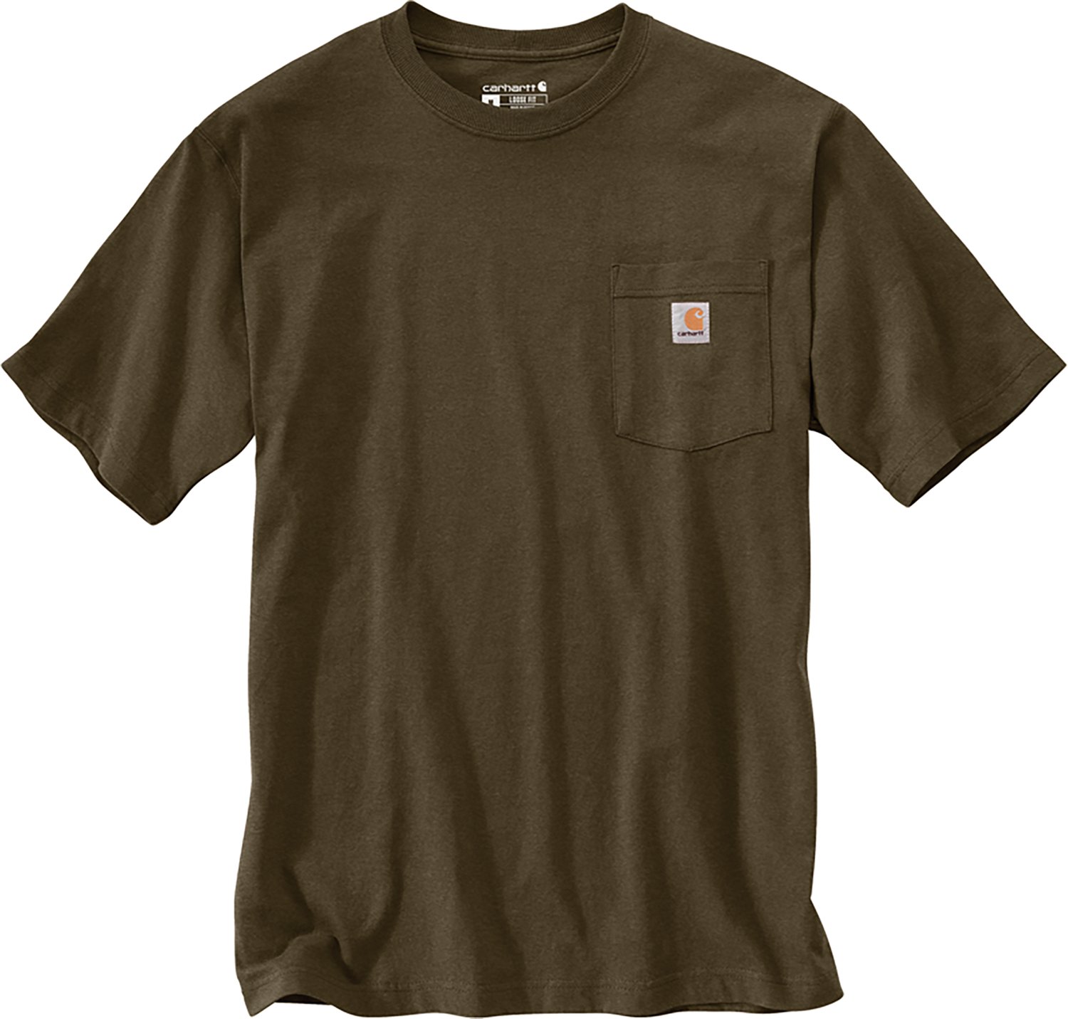 The Carhartt Men's K87 Short Sleeve Workwear Pocket T-shirt is made of a 60% cotton/40% Polyester jersey knit for a soft feel and comfortable wear and features a left chest pocket with the Carhartt logo and a rib-knit collar. Side-seam construction minimizes twisting for enhanced comfort. Original fit.