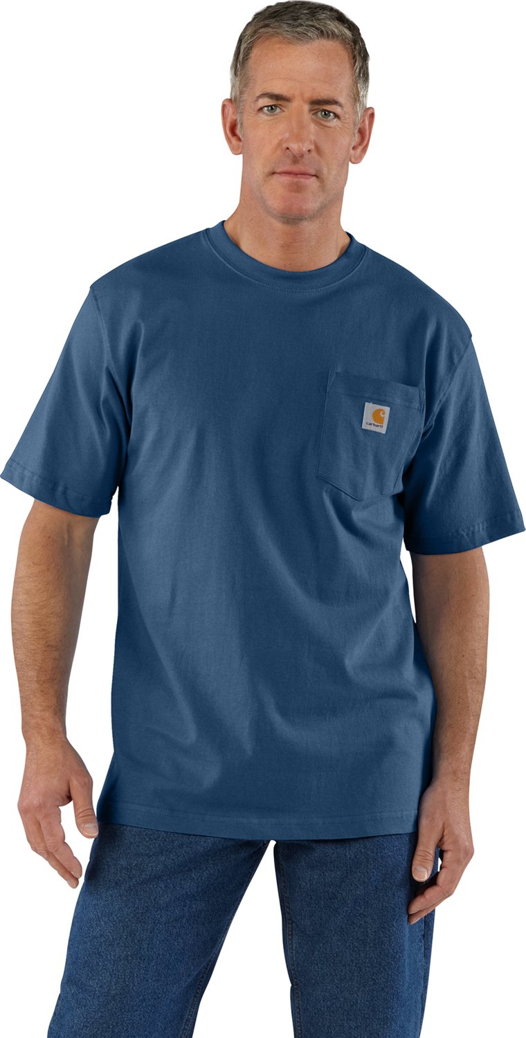 The Carhartt Men's K87 Short Sleeve Workwear Pocket T-shirt is made of a 60% cotton/40% Polyester jersey knit for a soft feel and comfortable wear and features a left chest pocket with the Carhartt logo and a rib-knit collar. Side-seam construction minimizes twisting for enhanced comfort. Original fit.