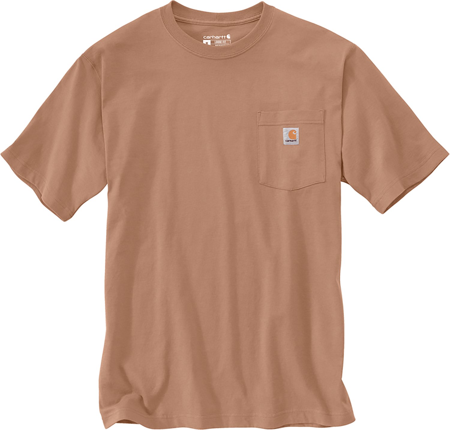 The Carhartt Men's K87 Short Sleeve Workwear Pocket T-shirt is made of a 60% cotton/40% Polyester jersey knit for a soft feel and comfortable wear and features a left chest pocket with the Carhartt logo and a rib-knit collar. Side-seam construction minimizes twisting for enhanced comfort. Original fit.